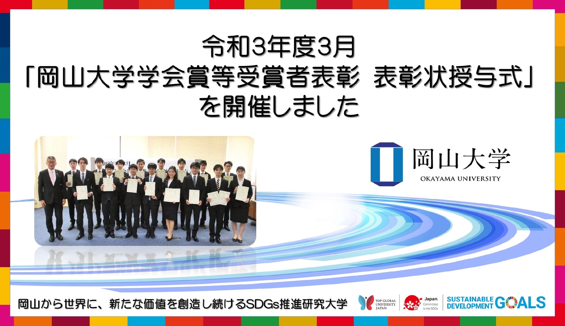 ・【岡山大学】令和3年3月「岡山大学学会賞等受賞者表彰 表彰状授与式」を開催