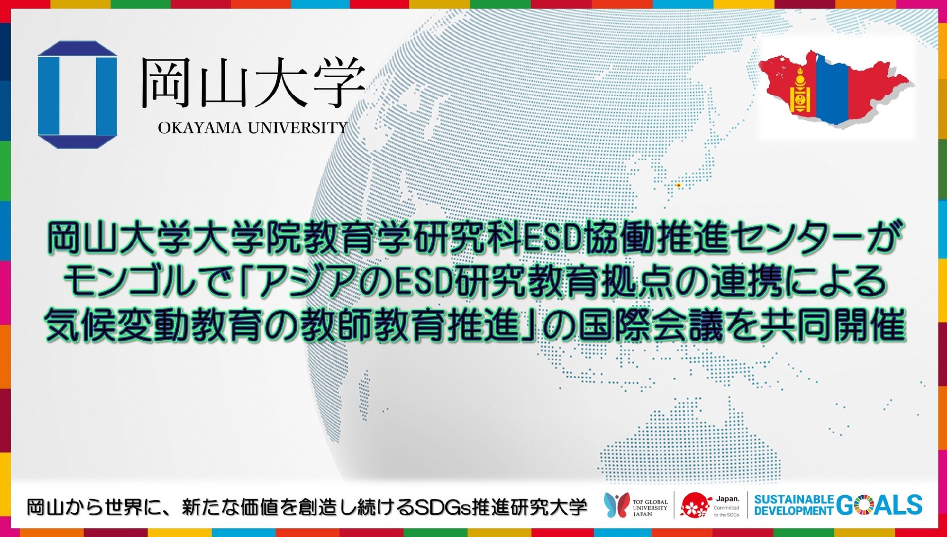 国立大学法人岡山大学(本部:岡山市北区、学長:槇野博史)の大学院教育学研究科ESD協働推進センターは、モンゴル国立教育大学およびモンゴル国立大学と共同で、2022年5月3~5日、モンゴル・ウランバートルにおいて「アジアのESD研究教育拠点の連携による気候変動教育の教師教育推進」の第3回国際会議を開催しました。