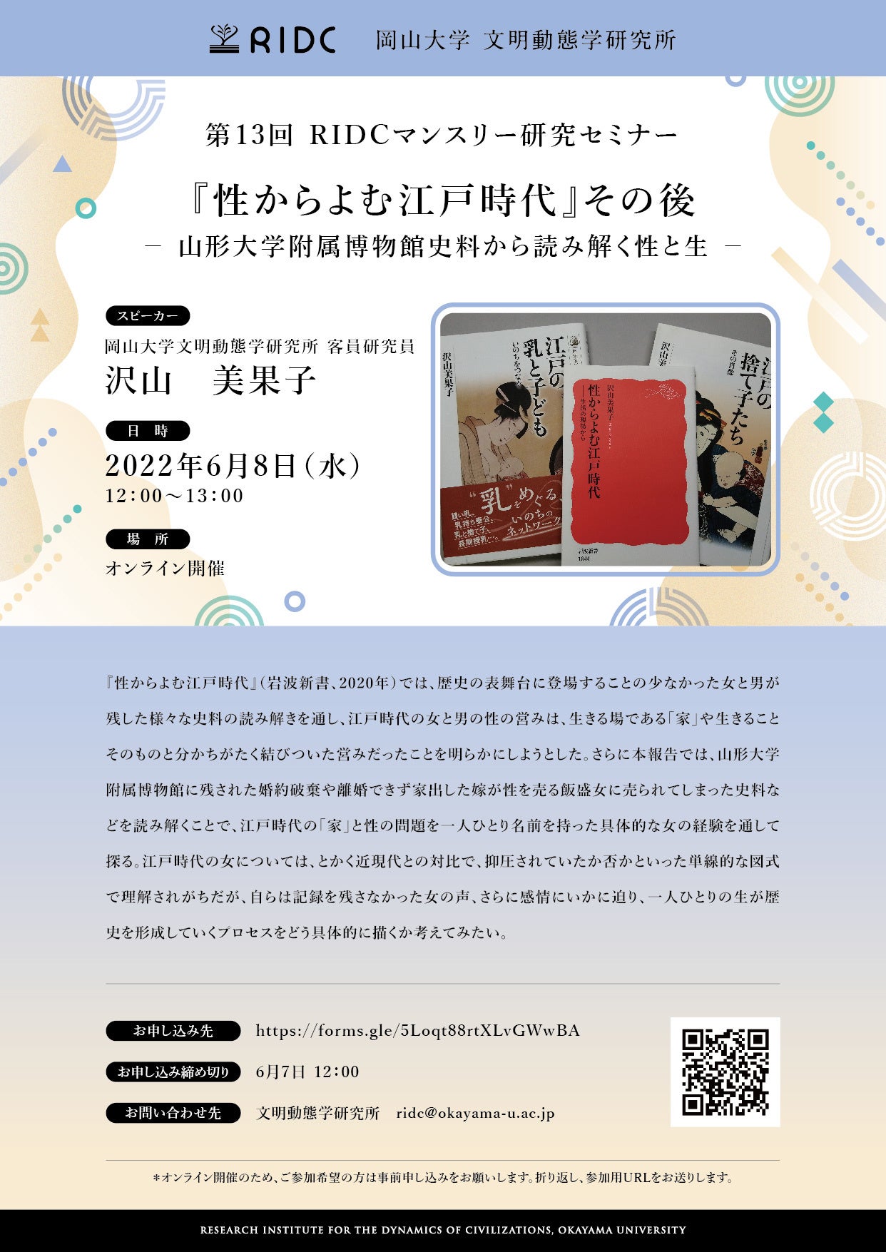・岡山大学文明動態学研究所『性からよむ江戸時代』その後-山形大学附属博物館史料から読み解く性と生-〔6/8,水 オンライン〕