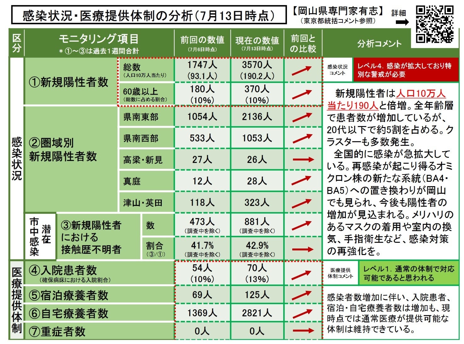 ・岡山県内の感染状況・医療提供体制の分析について(2022年7月6日時点)