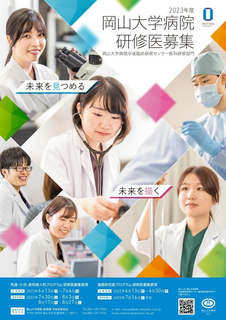 国立大学法人岡山大学(本部:岡山市北区津島中、学長:槇野博史)の岡山大学病院卒後臨床研修センターでは、「2023年度 岡山大学病院研修医」を募集しています。