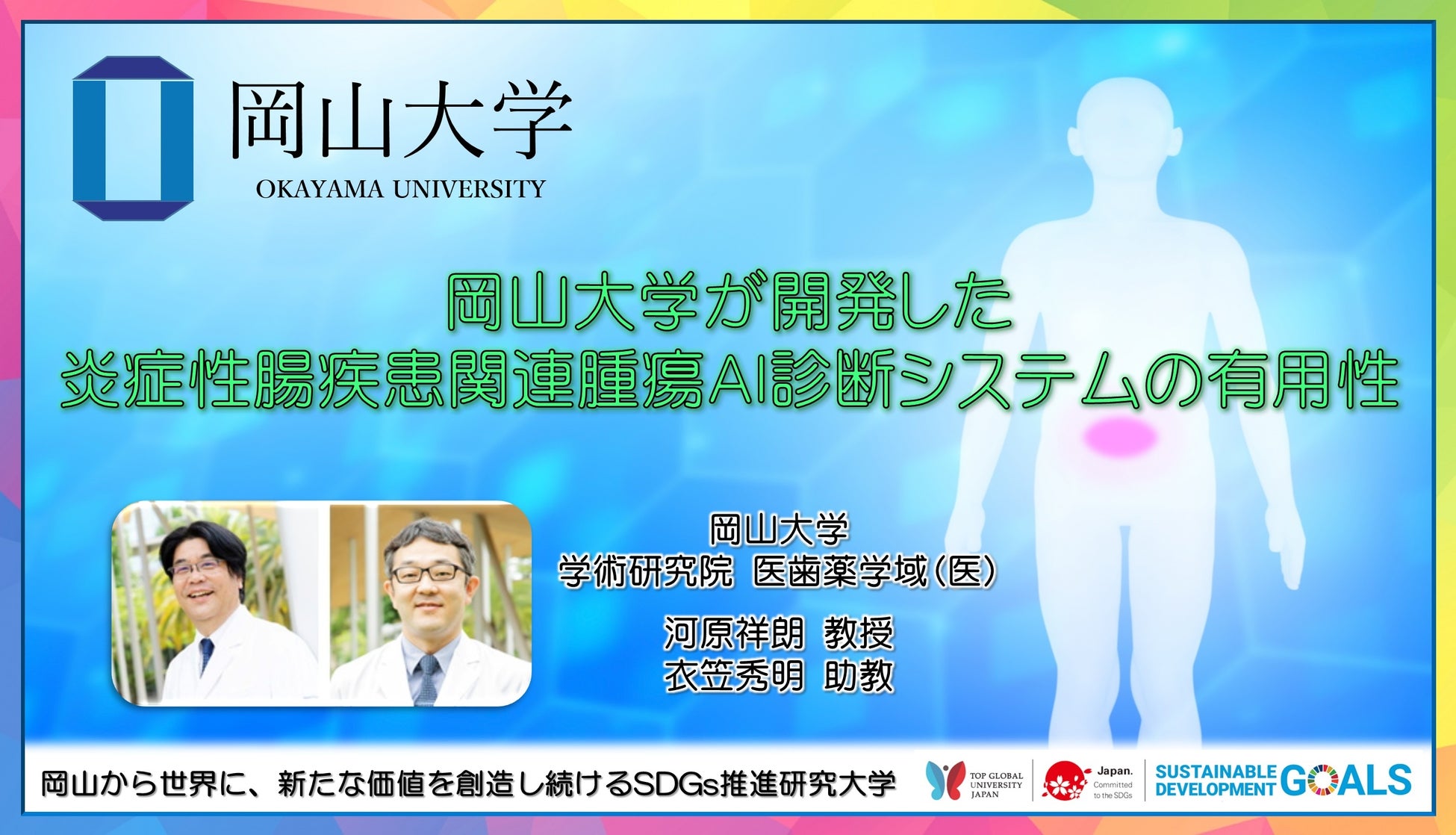 国立大学法人岡山大学(本部:岡山市北区、学長:槇野博史)学術研究院医歯薬学域の河原祥朗教授、衣笠秀明助教(研究責任者;光学医療診療部)、山本峻平医員(現姫路日赤病院)、平岡佐規子准教授(岡山大学病院炎症性腸疾患センター)、株式会社両備システムズの研究グループは人工知能(AI)を用いた炎症性腸疾患関連腫瘍の内視鏡診断システムを開発し、その有用性を検討しました。