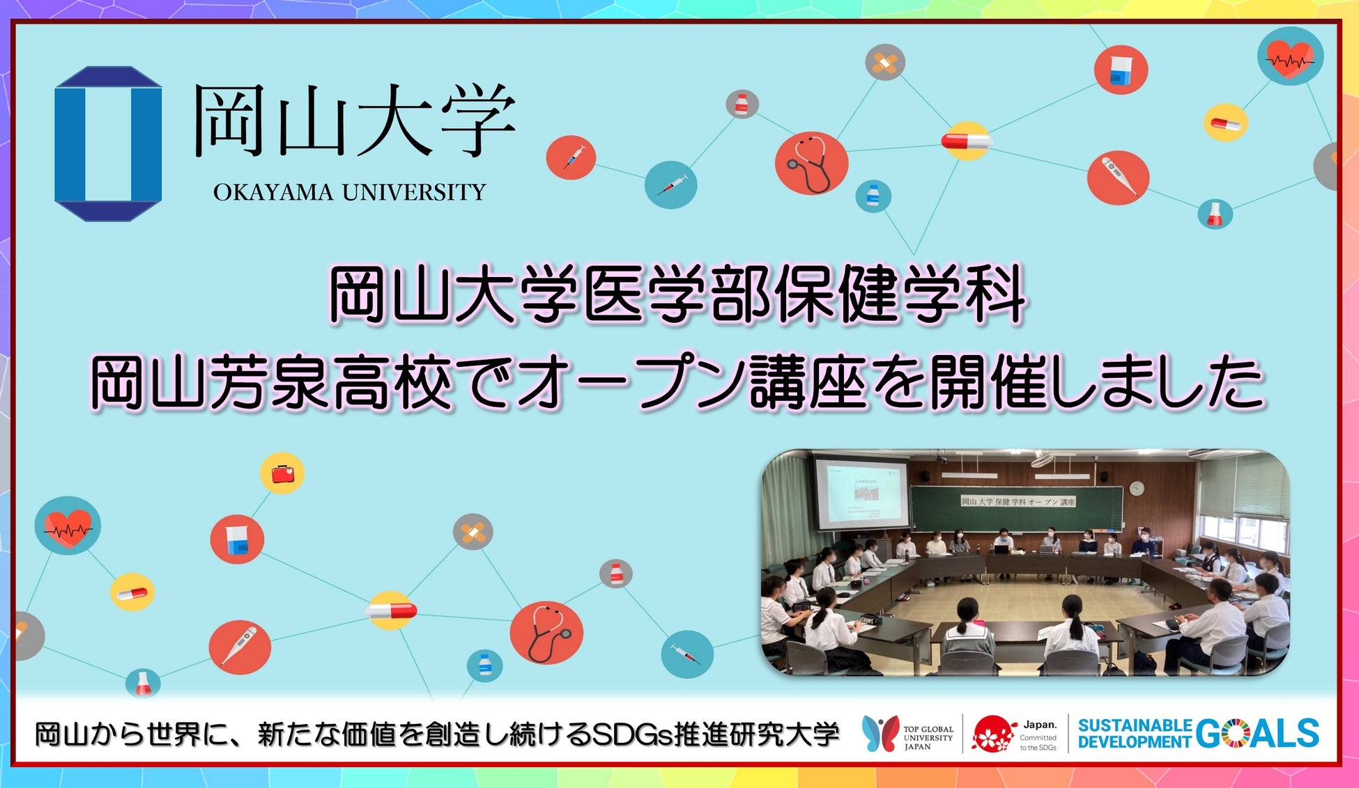 国立大学法人岡山大学(本部:岡山市北区津島中、学長:槇野博史)の医学部保健学科は、2022年6月18日(土)に岡山県立岡山芳泉高校(岡山市南区)に訪問し、オープン講座を実施しました。このオープン講義は、2020年から保健学科の入試委員会で継続している活動です。
