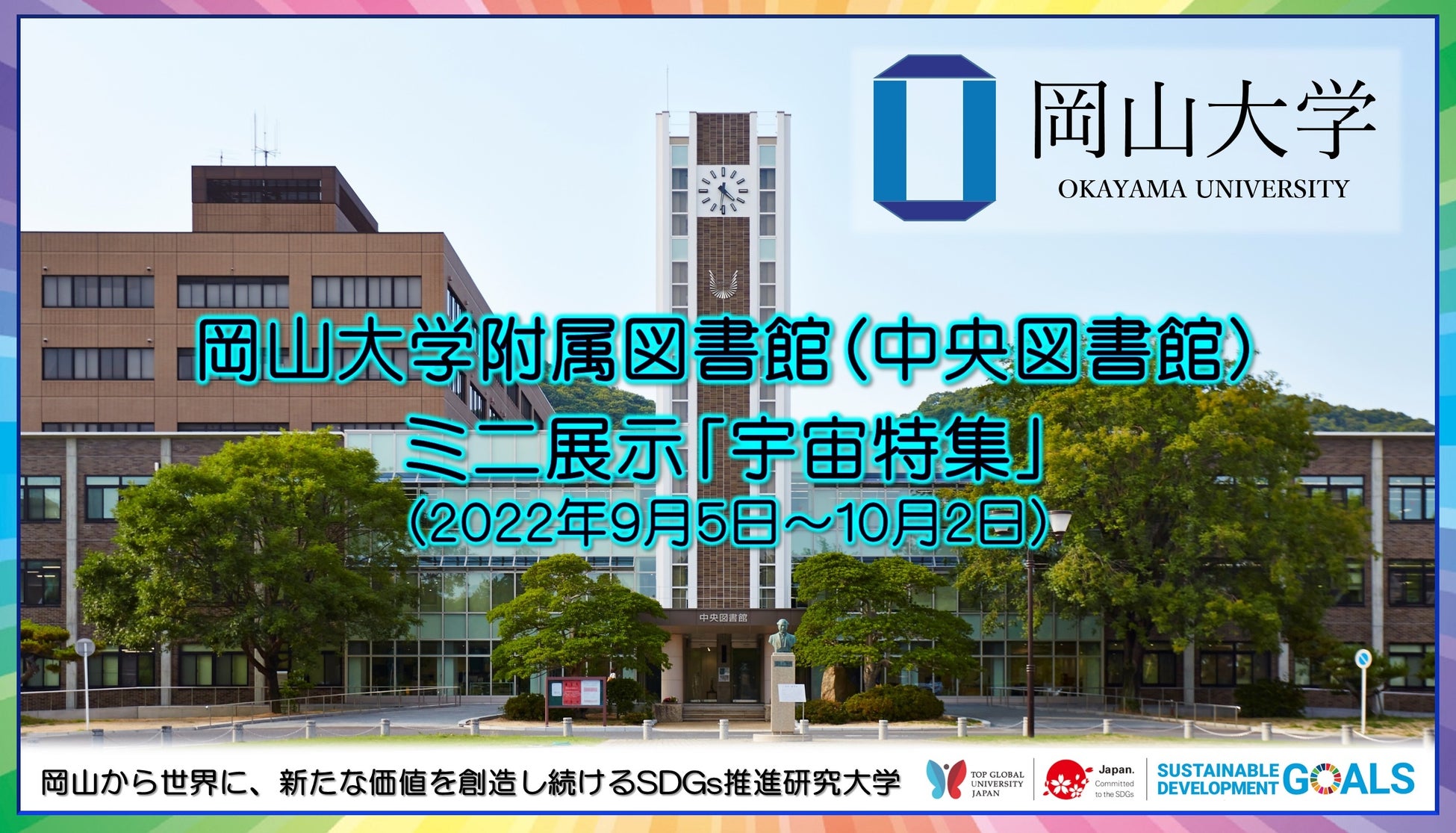 国立大学法人岡山大学(本部:岡山市北区、学長:槇野博史)の津島キャンパスにある岡山大学附属図書館(中央図書館)では、2022年9月5日から「宇宙特集」と題したミニ展示を行っています。