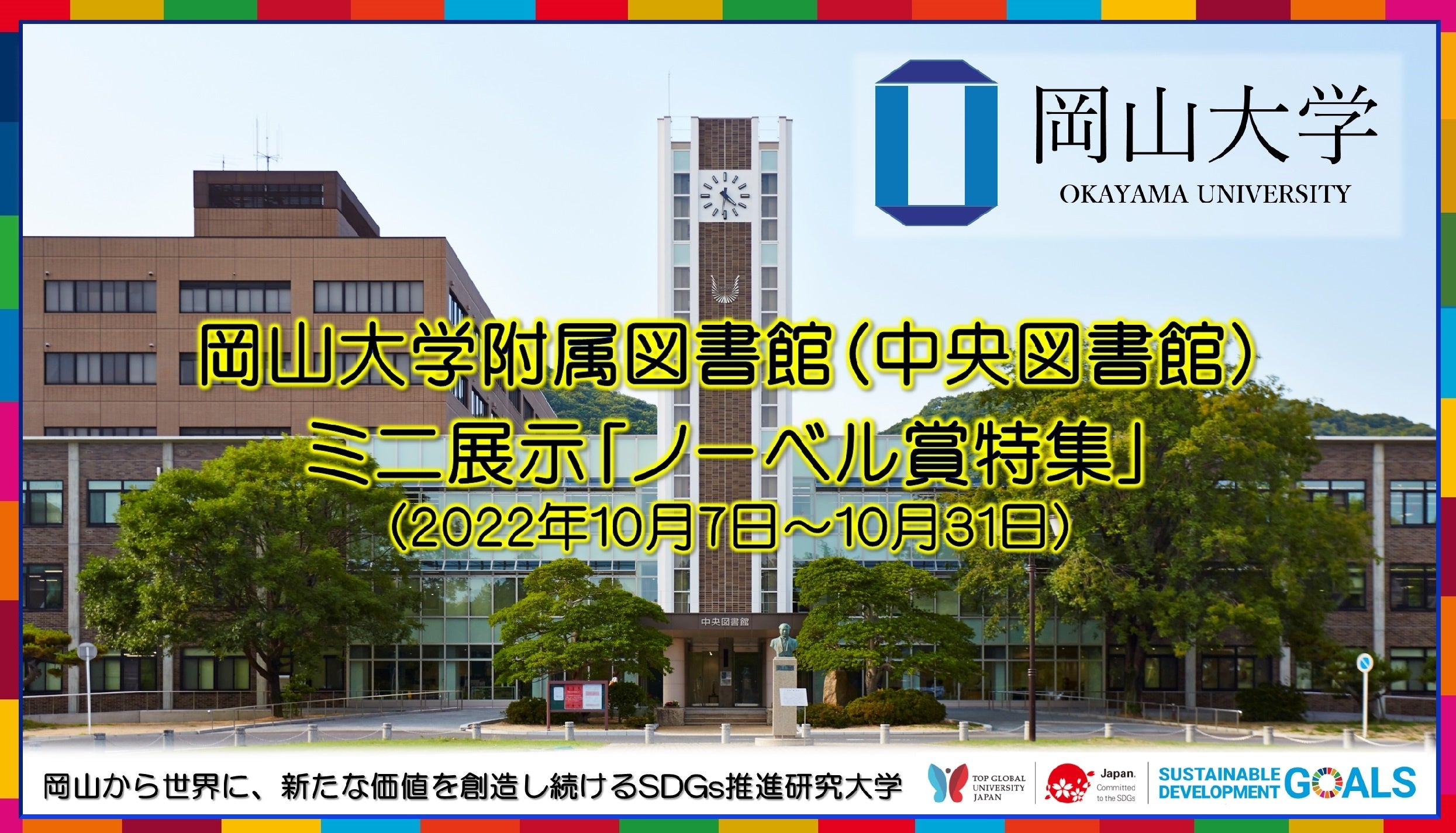 国立大学法人岡山大学(本部:岡山市北区、学長:槇野博史)の津島キャンパスにある岡山大学附属図書館(中央図書館)では、2022年10月7日から「ノーベル賞特集」と題したミニ展示を行っています。