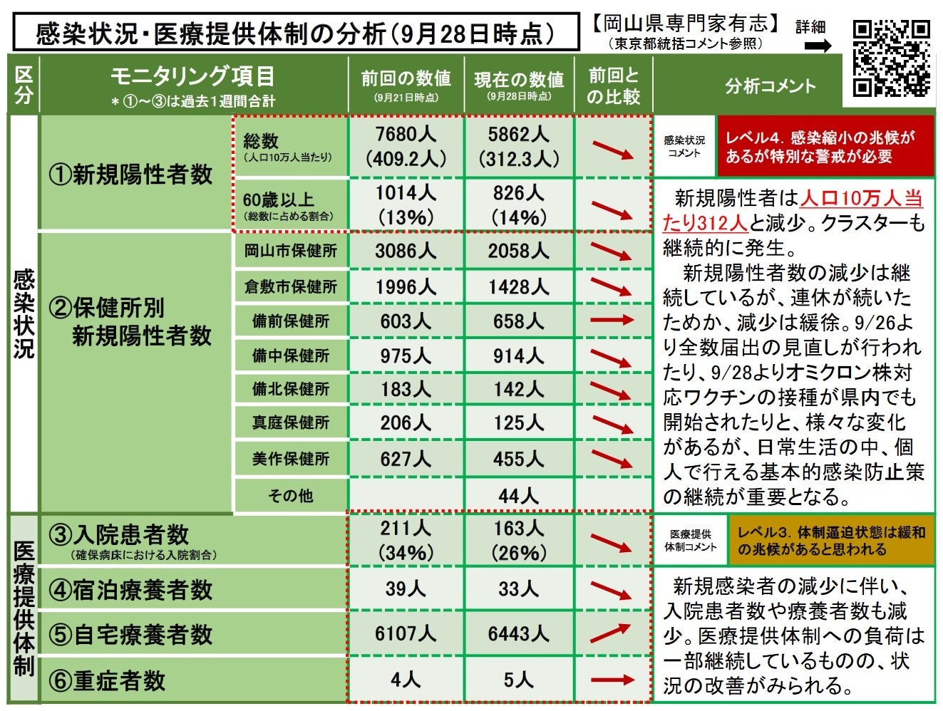 〔参考:先週 9月 21日(水)時点…レベル4.感染縮小の兆候があるが特別な警戒が必要〕