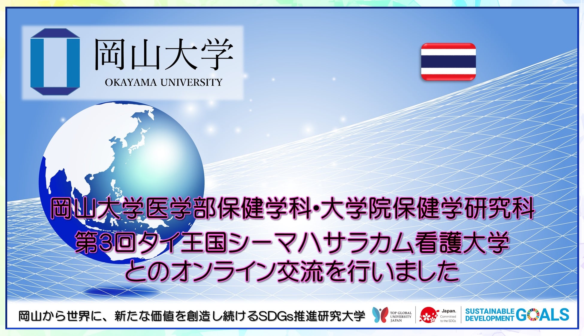 国立大学法人岡山大学(本部:岡山市北区、学長:槇野博史)の医学部保健学科・大学院保健学研究科は、2022年9月24日(土)、部局間協定を結んでいるタイのシーマハサラカム看護大学と