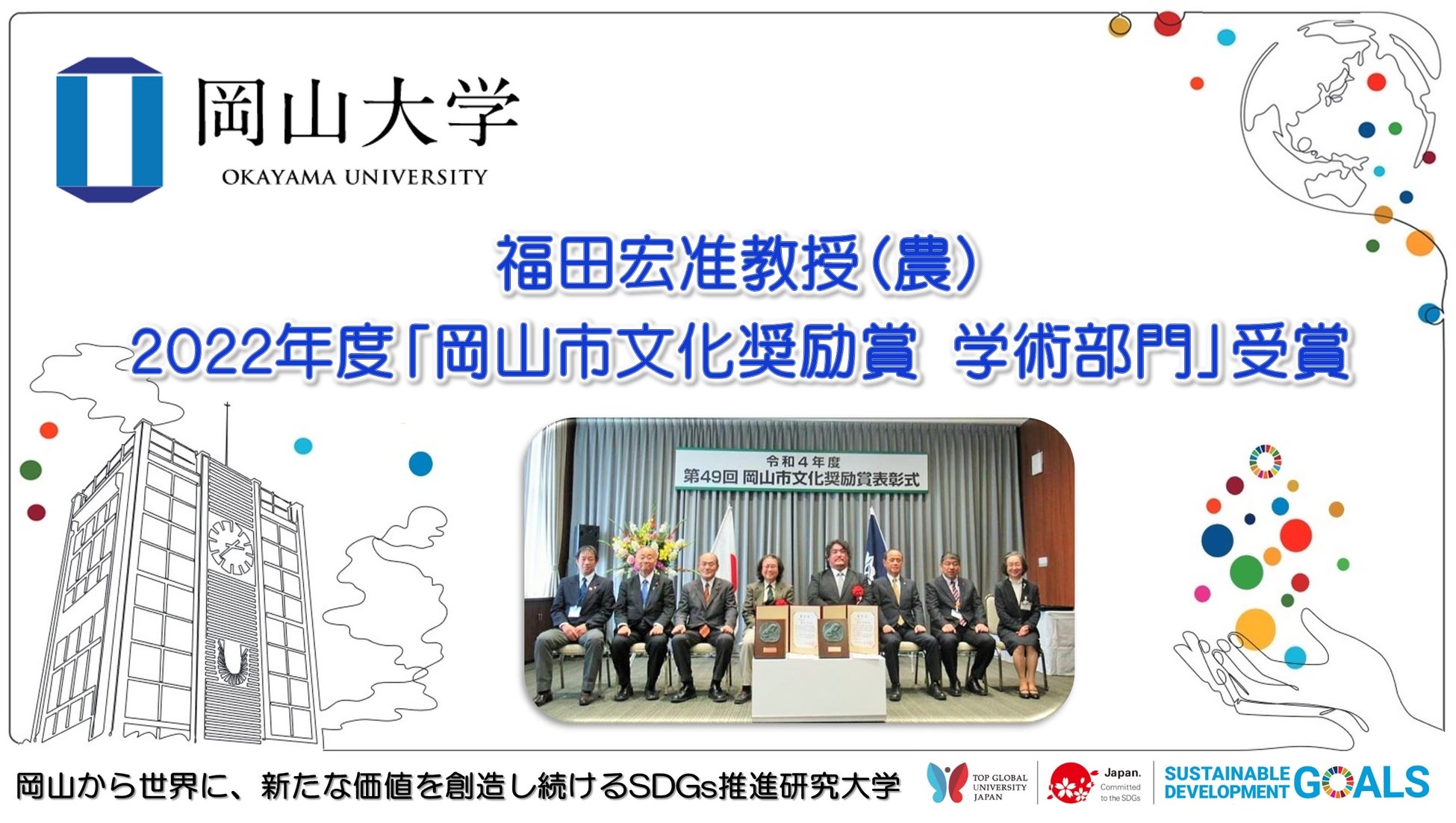 国立大学法人岡山大学は、国連の「持続可能な開発目標(SDGs)」を支援しています。また、政府の第1回「ジャパンSDGsアワード」特別賞を受賞しています
