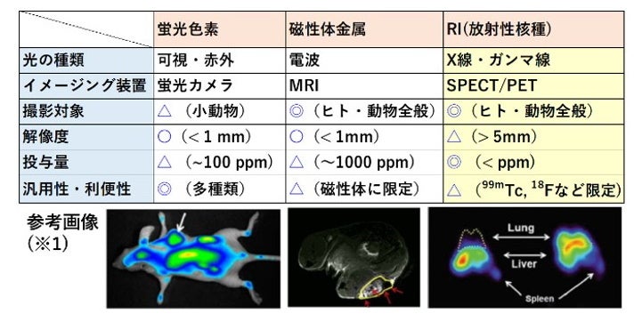 - これまでイメージングできなかった薬物の生体内での動態観察の実現につながる、診断・治療のための新しい可視化ツールとして期待。