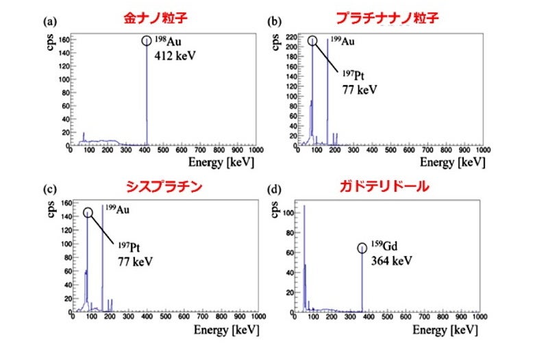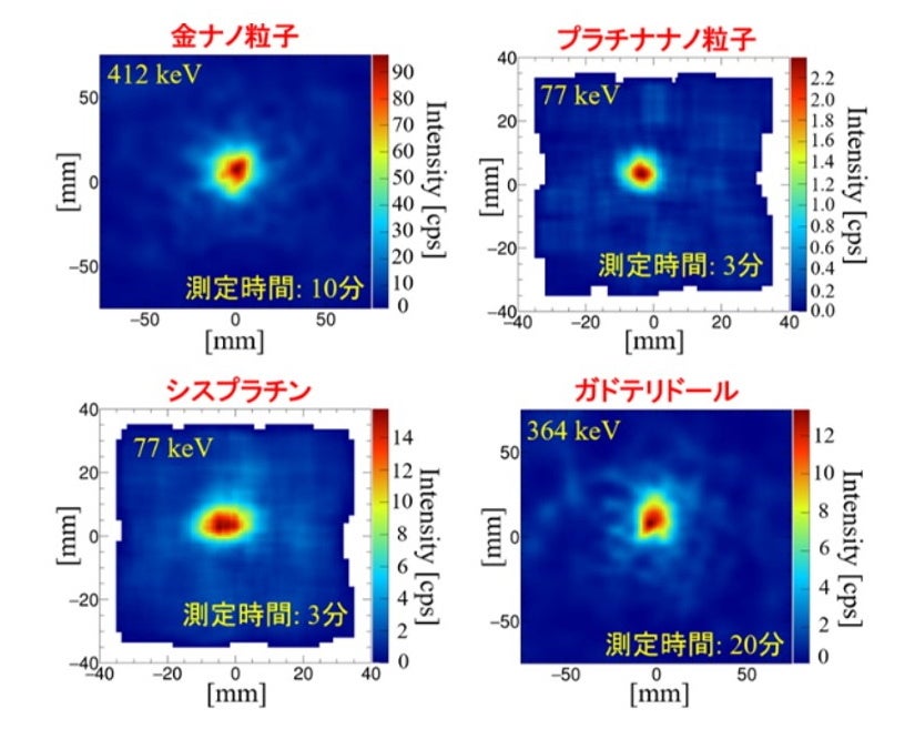 - 独自開発の広帯域カメラを使用し、金ナノ粒子や抗がん剤などの放射化イメージングに成功。