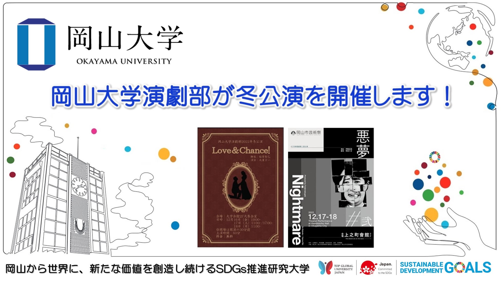 岡山大学演劇部の松本さわ子さん(教育学部1年)は「今年一年の締めにふさわしいキラキラドキドキの劇をお届けします!この機会に生の演劇をぜひご覧ください」とコメントしています。