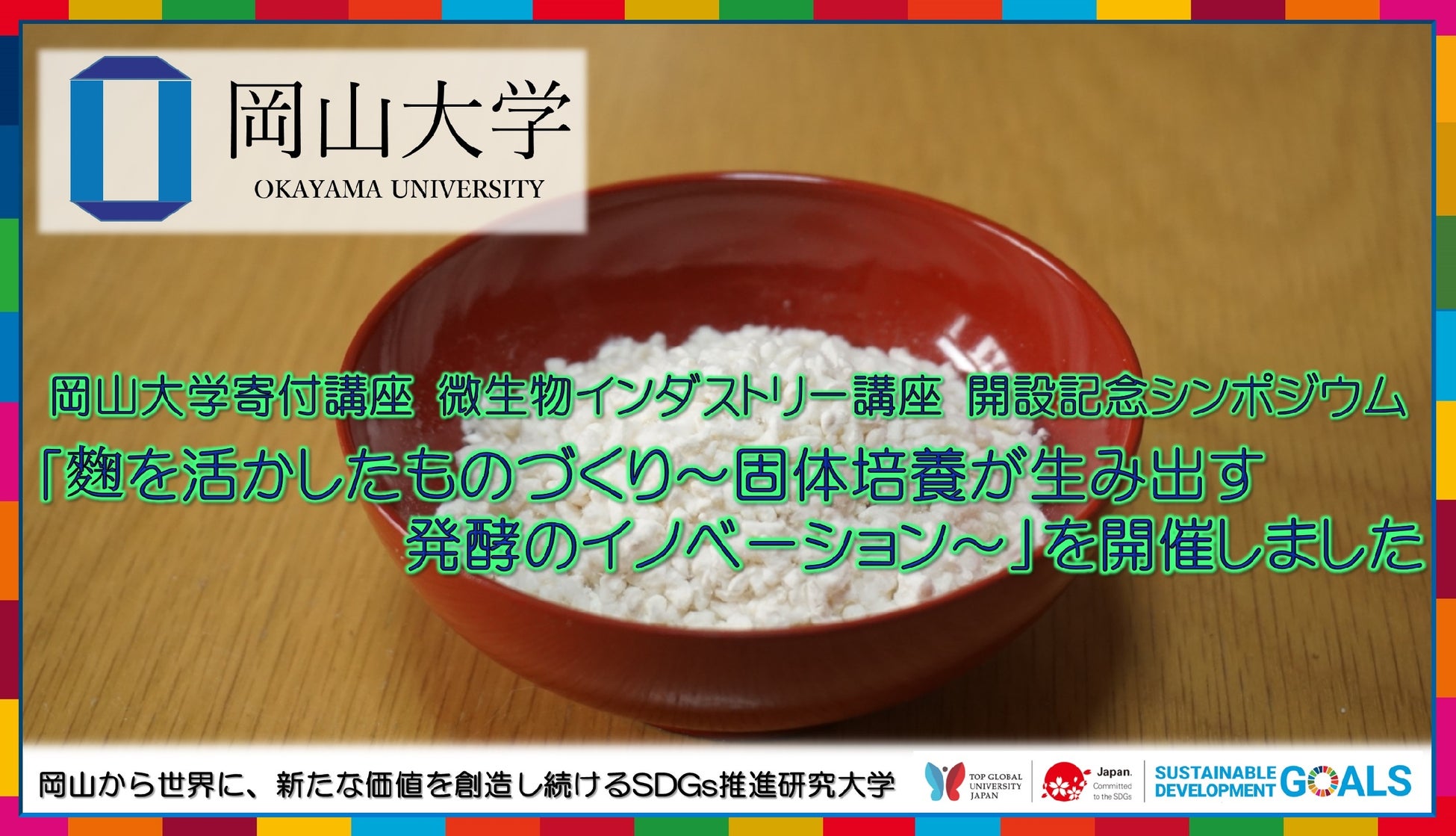 〇岡山大学寄付講座微生物インダストリー講座開設記念シンポジウム「麴を活かしたものづくり 固体培養が生み出す発酵のイノベーション」動画(YouTube)