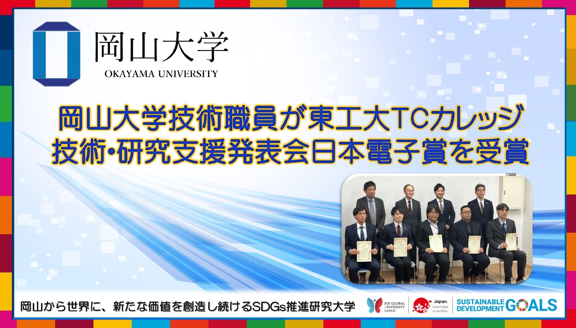 国立大学法人岡山大学は、国連の「持続可能な開発目標(SDGs)」を支援しています。また、政府の第1回「ジャパンSDGsアワード」特別賞を受賞しています