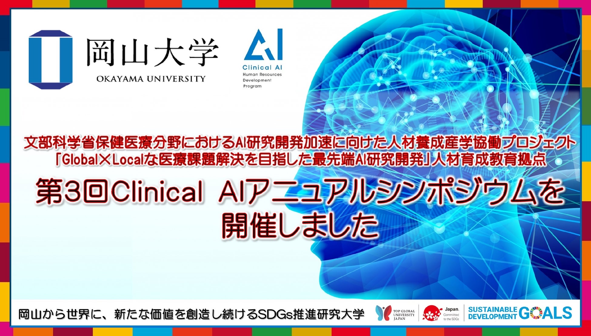 国立大学法人岡山大学(本部:岡山市北区、学長:槇野博史)は2023年2月2日、文部科学省保健医療分野におけるAI研究開発加速に向けた人材養成産学協働プロジェクト「Global×Localな医療課題解決を目指した最先端AI研究開発」人材育成教育拠点による、第3回Clinical