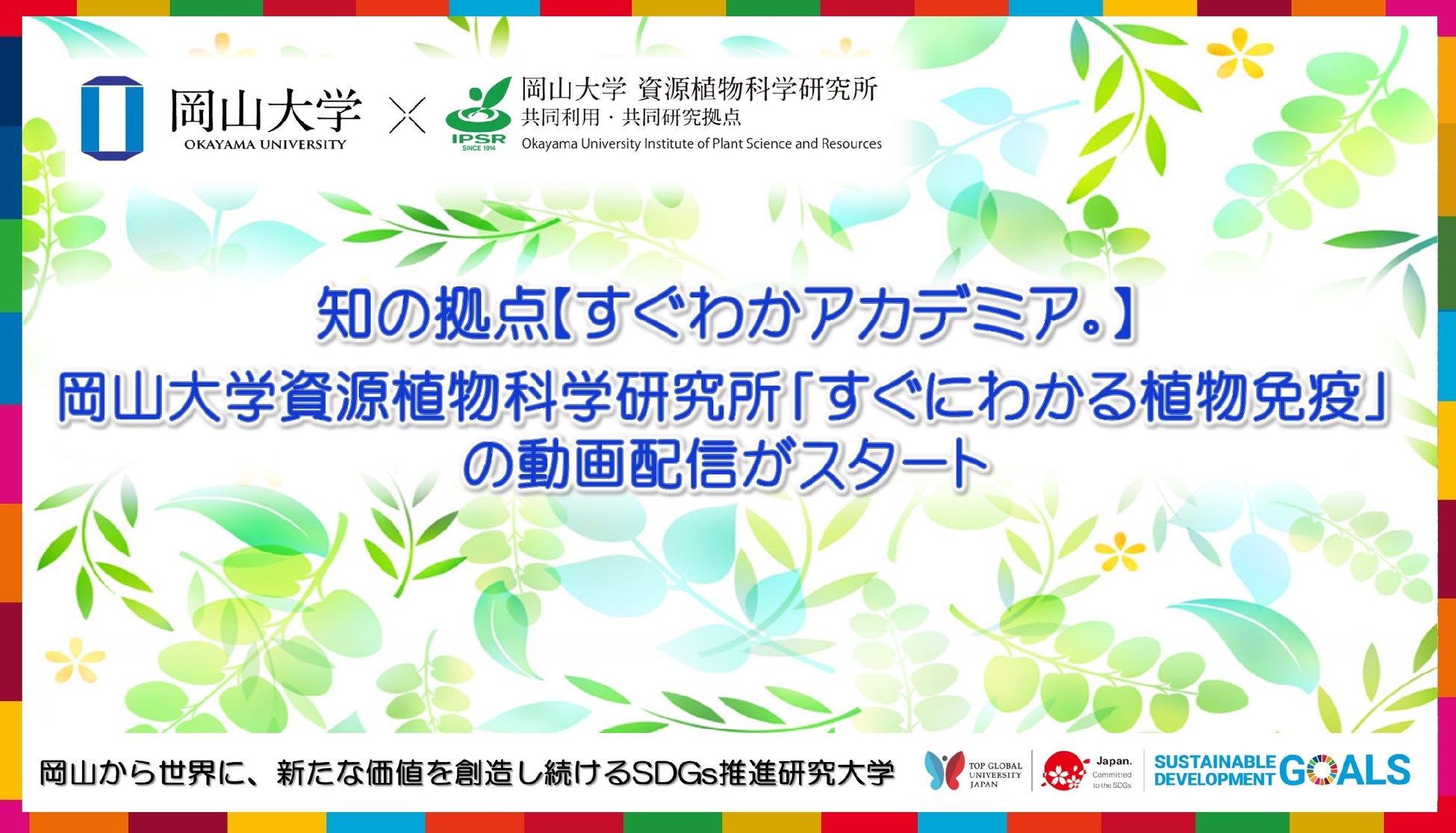 今回、JURCにおいて学問の最先端の様子を、広く一般の方々や学生の方々に届けるための動画「知の拠点【すぐわかアカデミア。】」において、岡山大学資源植物科学研究所(岡山県倉敷市)の河野洋治教授の「すぐにわかる植物免疫」が2023年1月20日に公開されました。