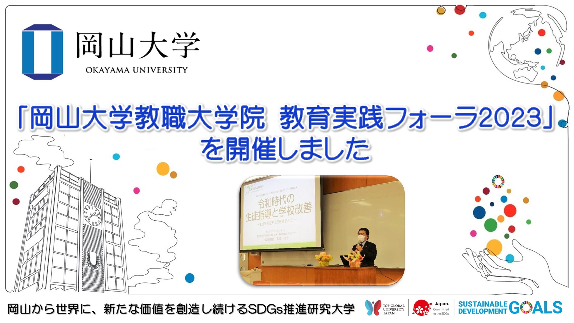 国立大学法人岡山大学(本部:岡山市北区)の教職大学院は、2023年3月18日に岡山県教育委員会、岡山市教育委員会の後援のもと、「教育実践フォーラム2023」を開催しました。