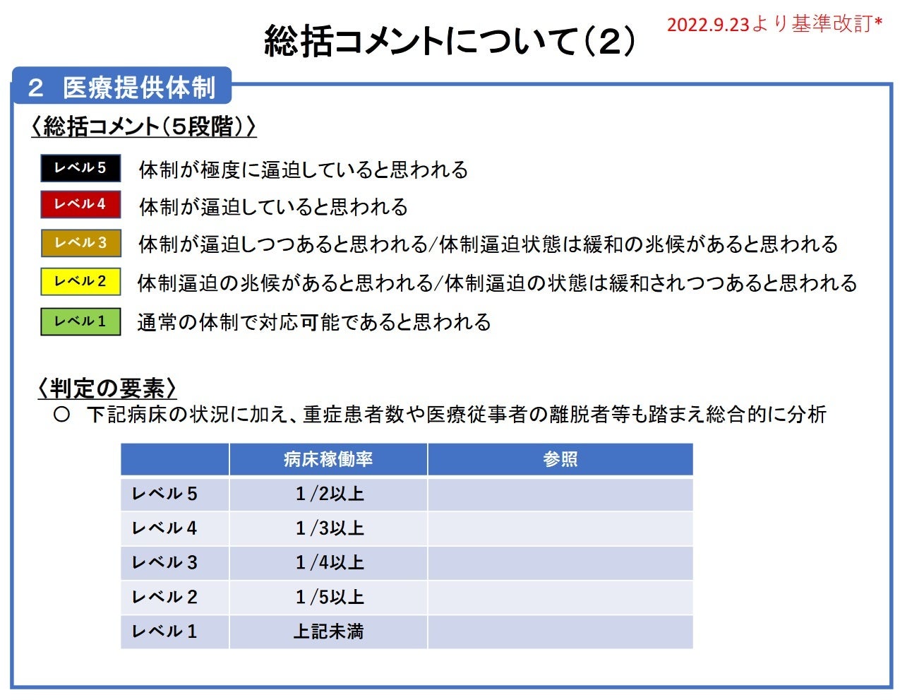 <感染状況・医療提供体制のレベル評価について>