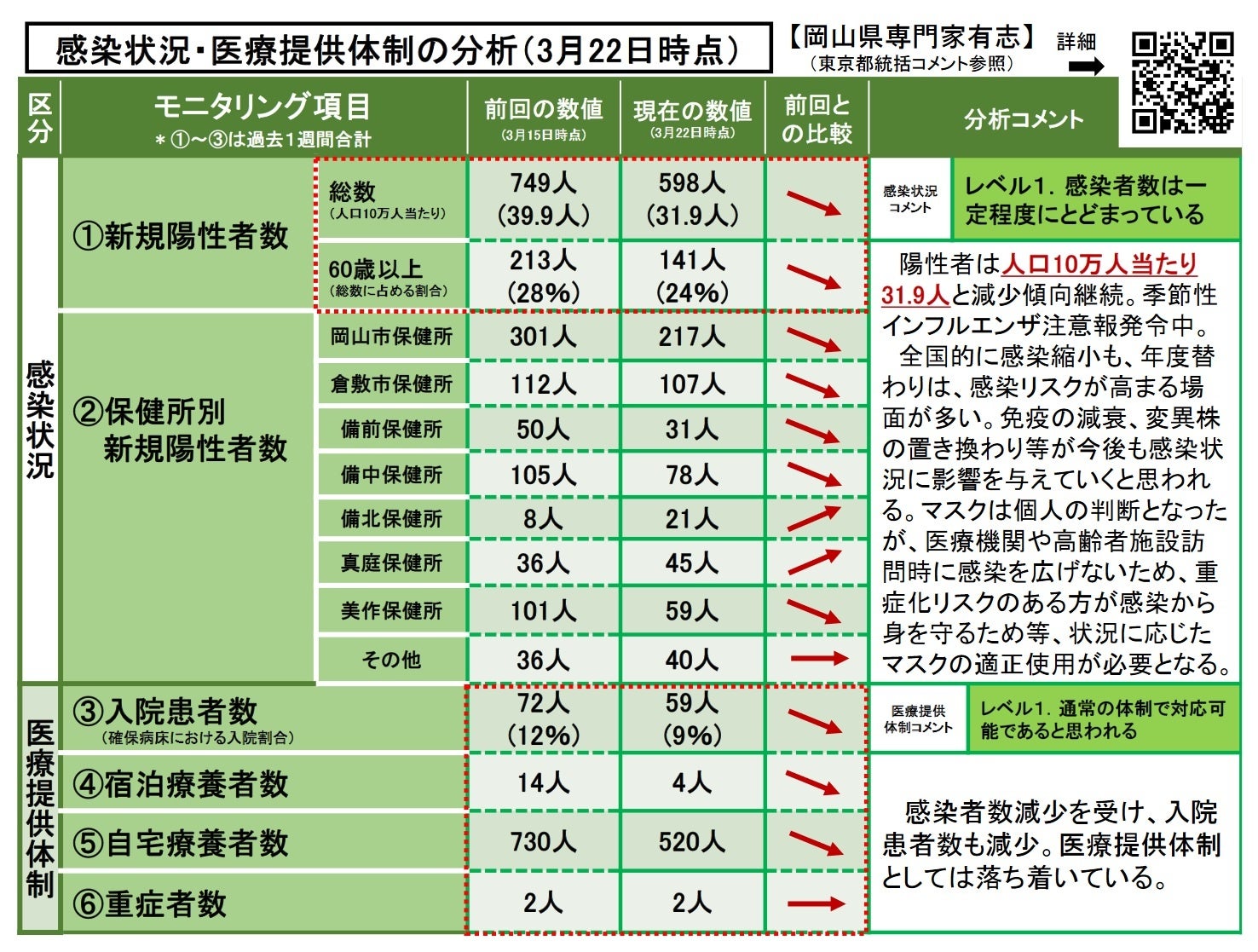 ・岡山県内の感染状況・医療提供体制の分析について(2023年3月15日時点)