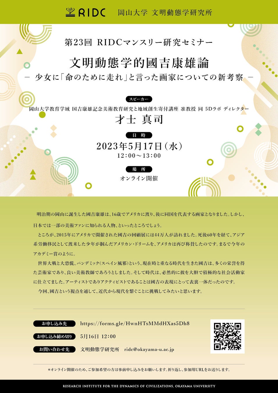 第23回となるRIDCマンスリー研究セミナーを下記の通りオンラインで開催します。