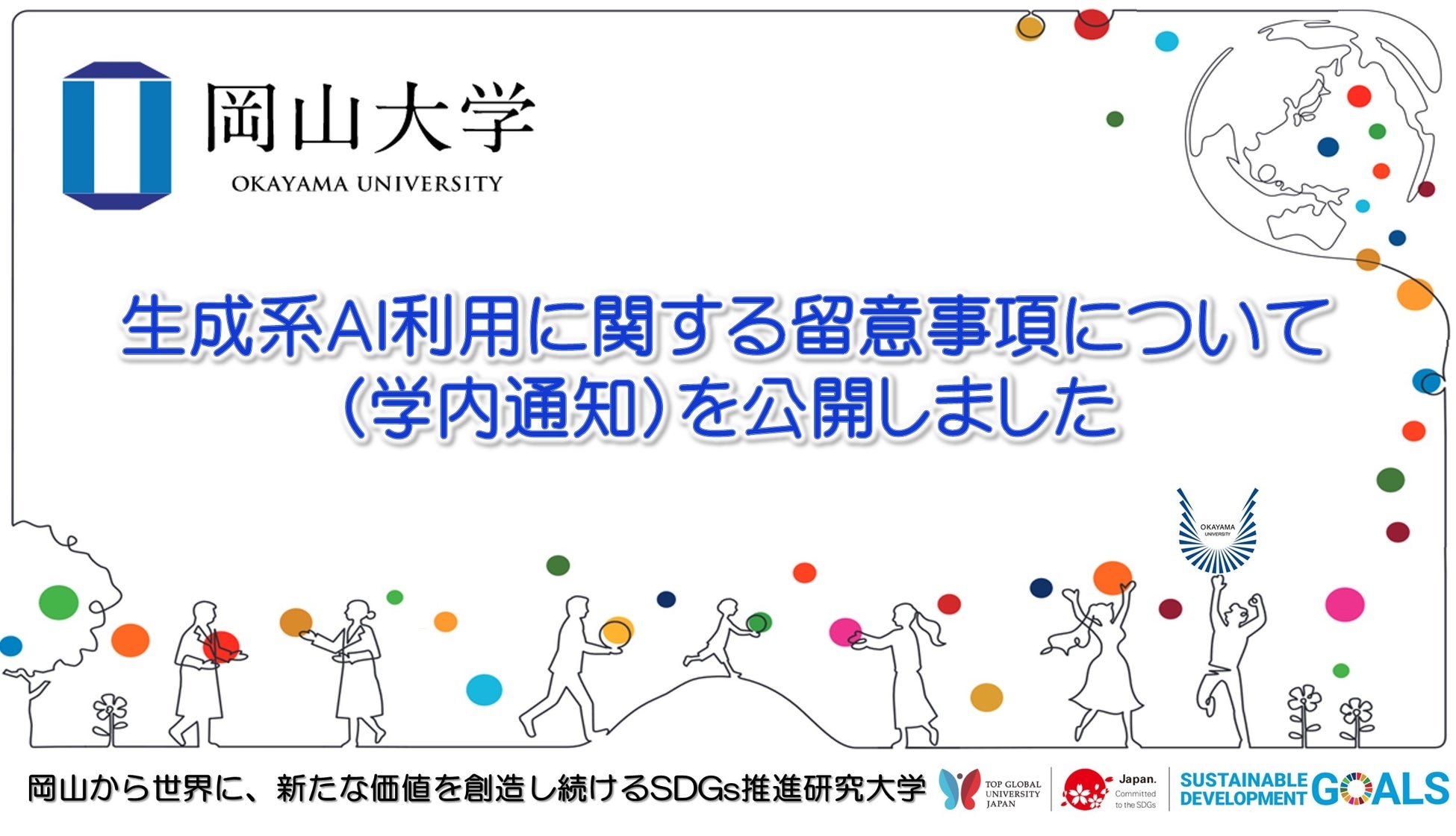 国立大学法人岡山大学(本部:岡山市北区、学長:那須保友)は、生成系AI利用に関する留意事項についての学内通知を、2023年4月21日に行い、同時に本学メインホームページで公開しましたので、お知らせします。
