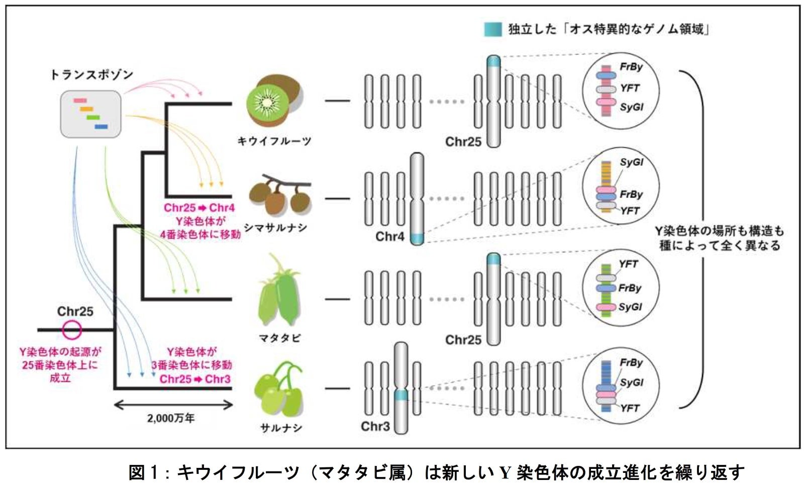 - キウイフルーツは進化の中で何度も「新しいY染色体」を生み出したことを発見しました。