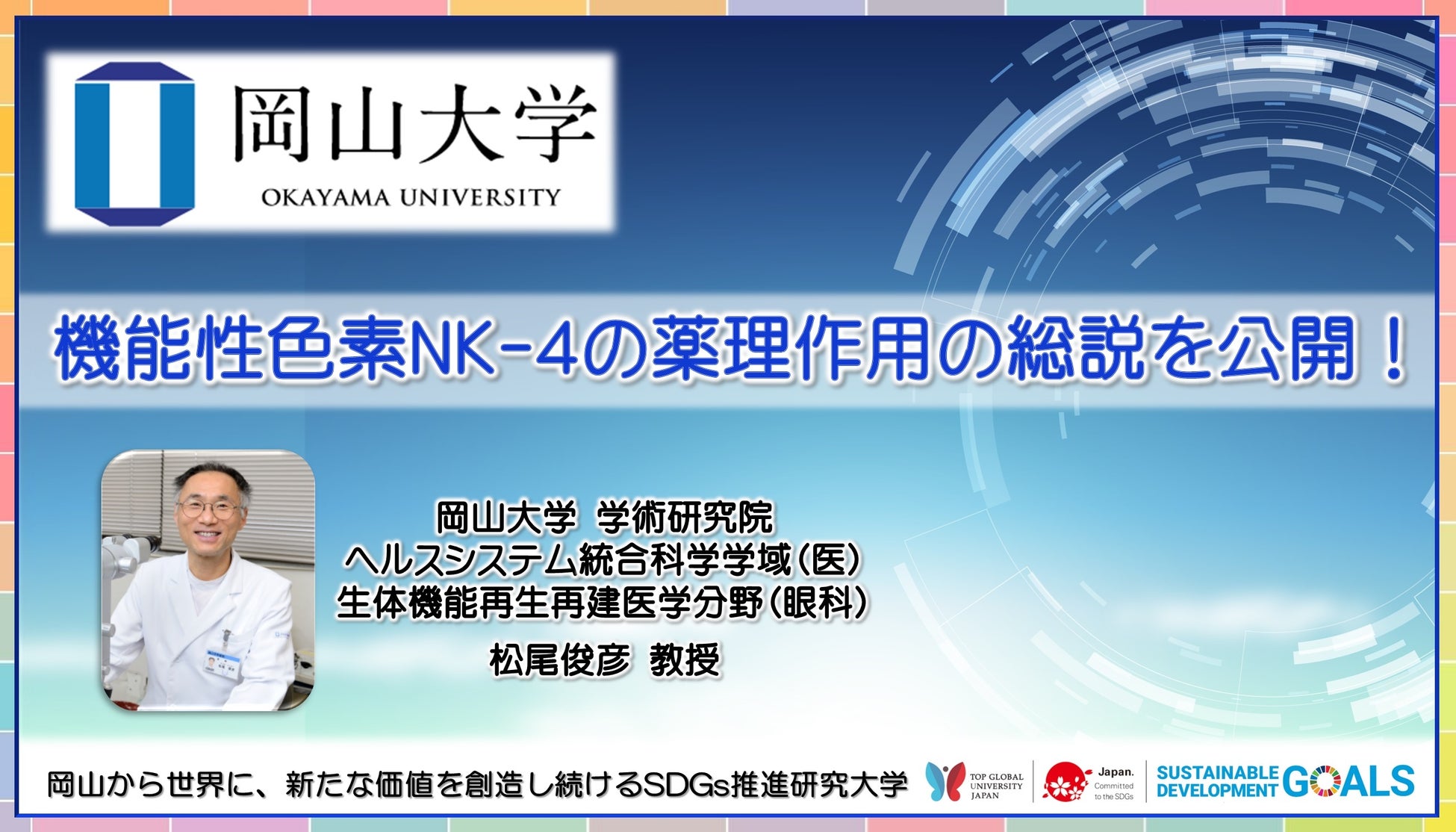 眼科医師)、同学術研究院医歯薬学域(薬)精密有機合成化学分野の阿部匠講師は、岡山市の株式会社林原が製造するNK-4の薬理作用に関する総説をまとめました。