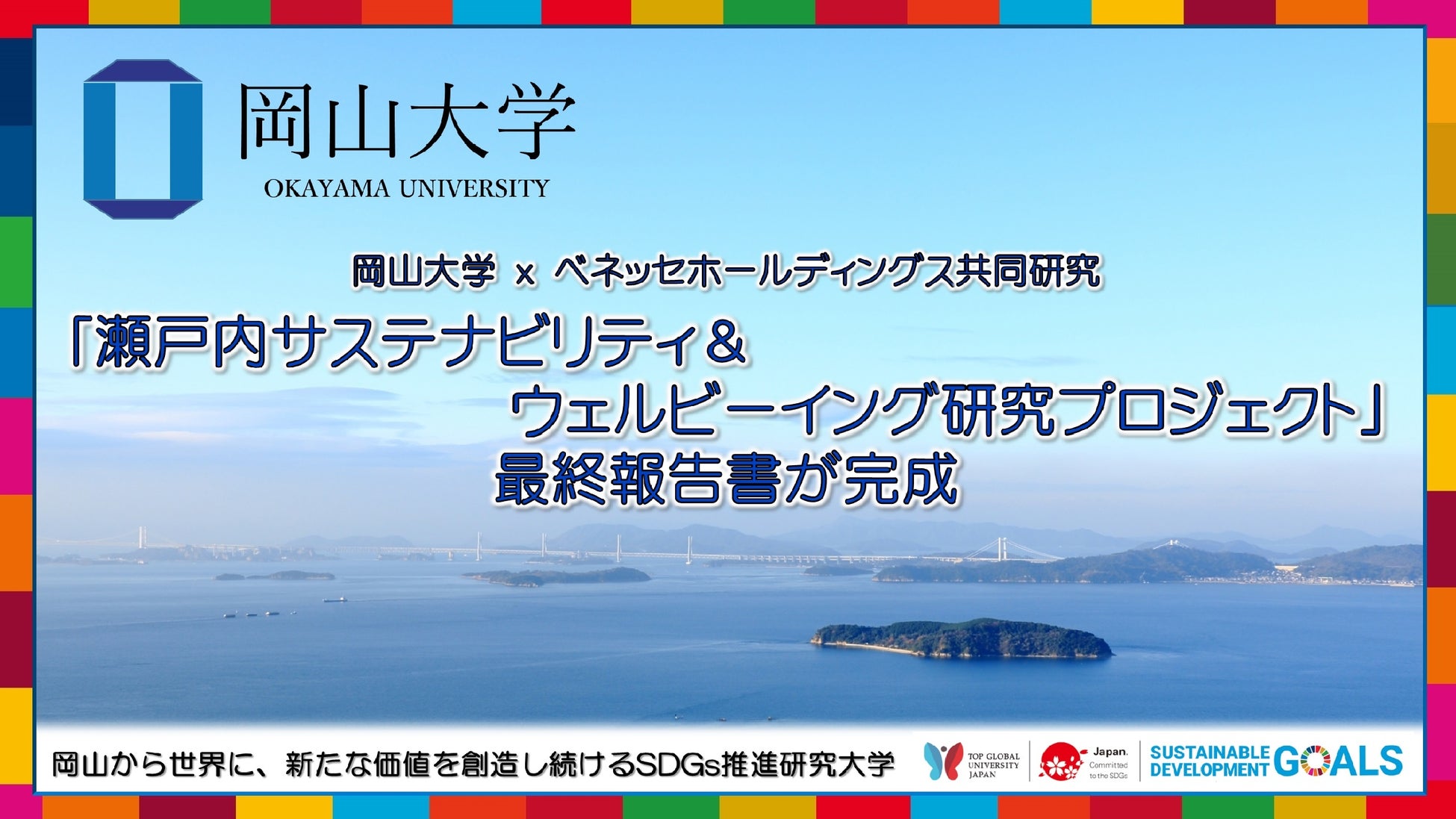 国立大学法人岡山大学(本部:岡山市北区)と株式会社ベネッセホールディングスは、両者が注力するSDGsを軸に、2020年度から2022年度の3カ年をかけて、地域の持続可能性と「well-being:ウェルビーイング」の学術的研究「瀬戸内サステナビリティ&ウェルビーイング研究プロジェクト」を行ってきました。