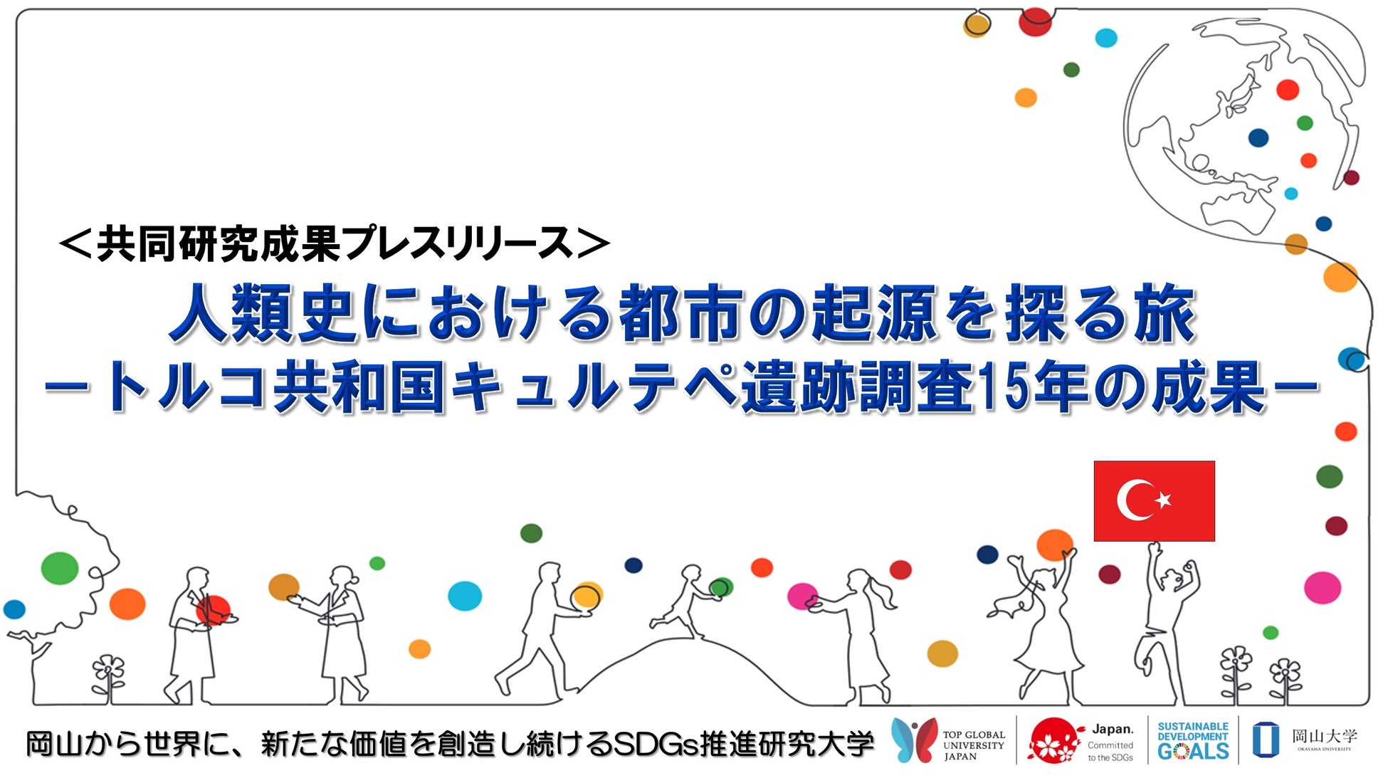 ノートルダム清心女子大学の紺谷亮一教授(文学部現代社会学科・考古学)と岡山大学の山口雄治助教(文明動態学研究所・考古学)をはじめとする研究グループは、人類史における都市の起源を探るため、フィクリ・クラックオウル教授(トルコ共和国・アンカラ大学・考古学、キュルテペ遺跡発掘調査隊長)と共同で、トルコ・キュルテペ遺跡の調査を2008年に開始しました。
