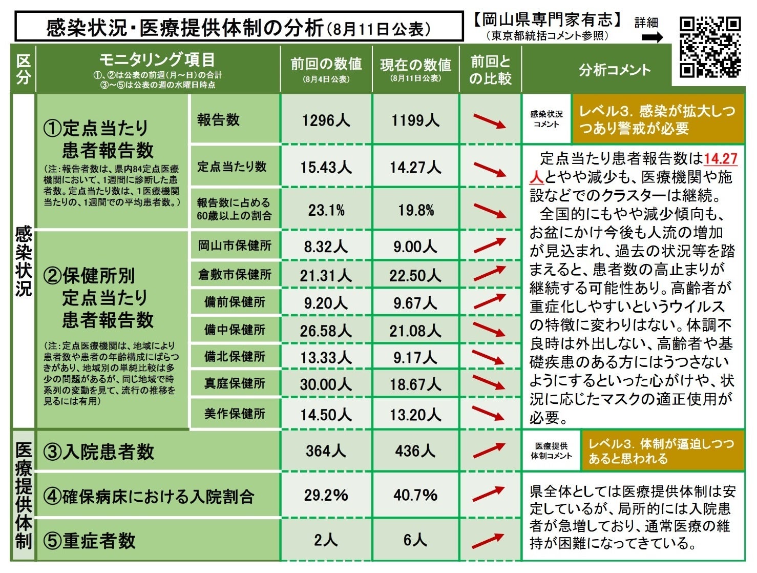 〔参考:前回 8月 4日(金)時点…レベル3.感染が拡大しつつあり警戒が必要〕