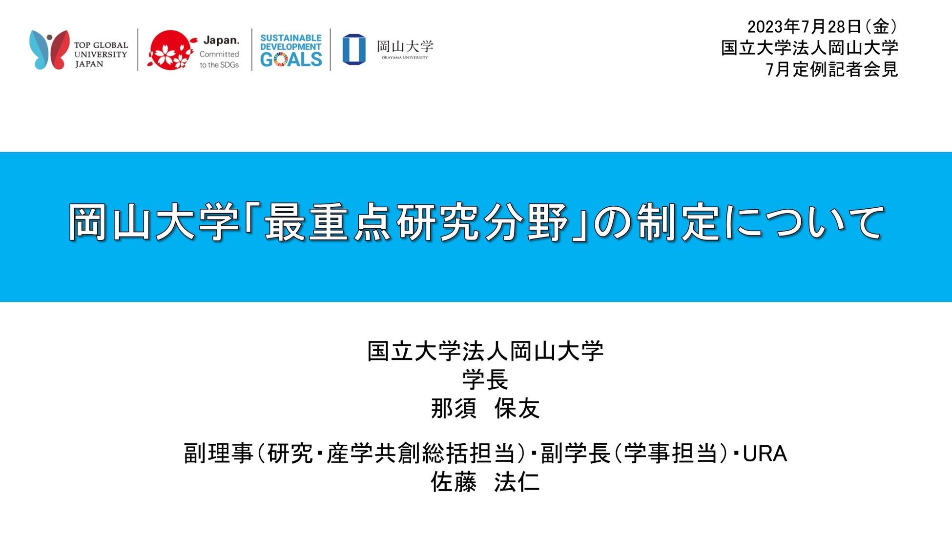 - <参考>2023年7月岡山大学定例記者会見<学長定例発表>(2023年7月28日(金)開催)