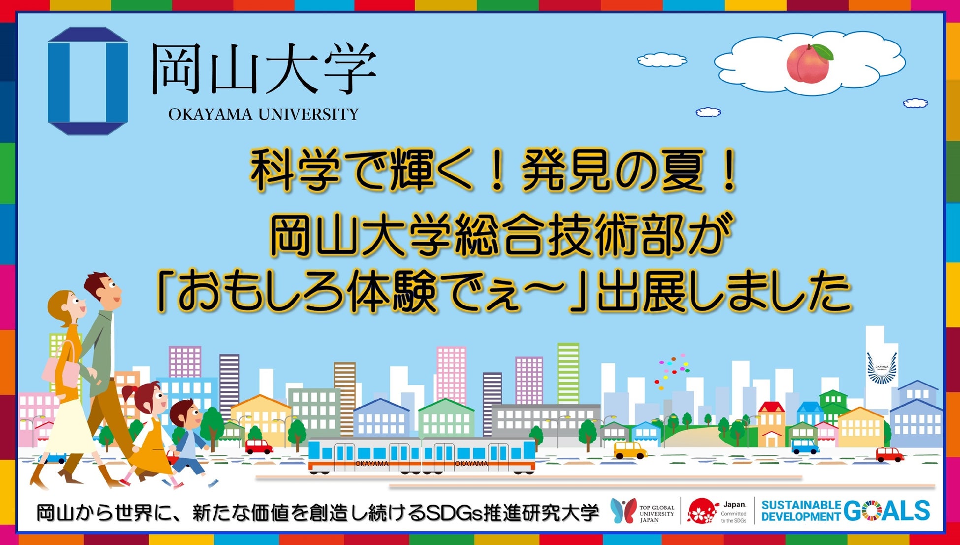 国立大学法人岡山大学(本部:岡山市北区、学長:那須保友)の総合技術部は、2023年7月21日、22日に岡山市北区の岡山リサーチパーク内にあるテクノサポート岡山/岡山県工業技術センターで開催された「おもしろ体験でぇ〜」(主催:「おもしろ体験でぇ~」実行委員会)に出展しました。