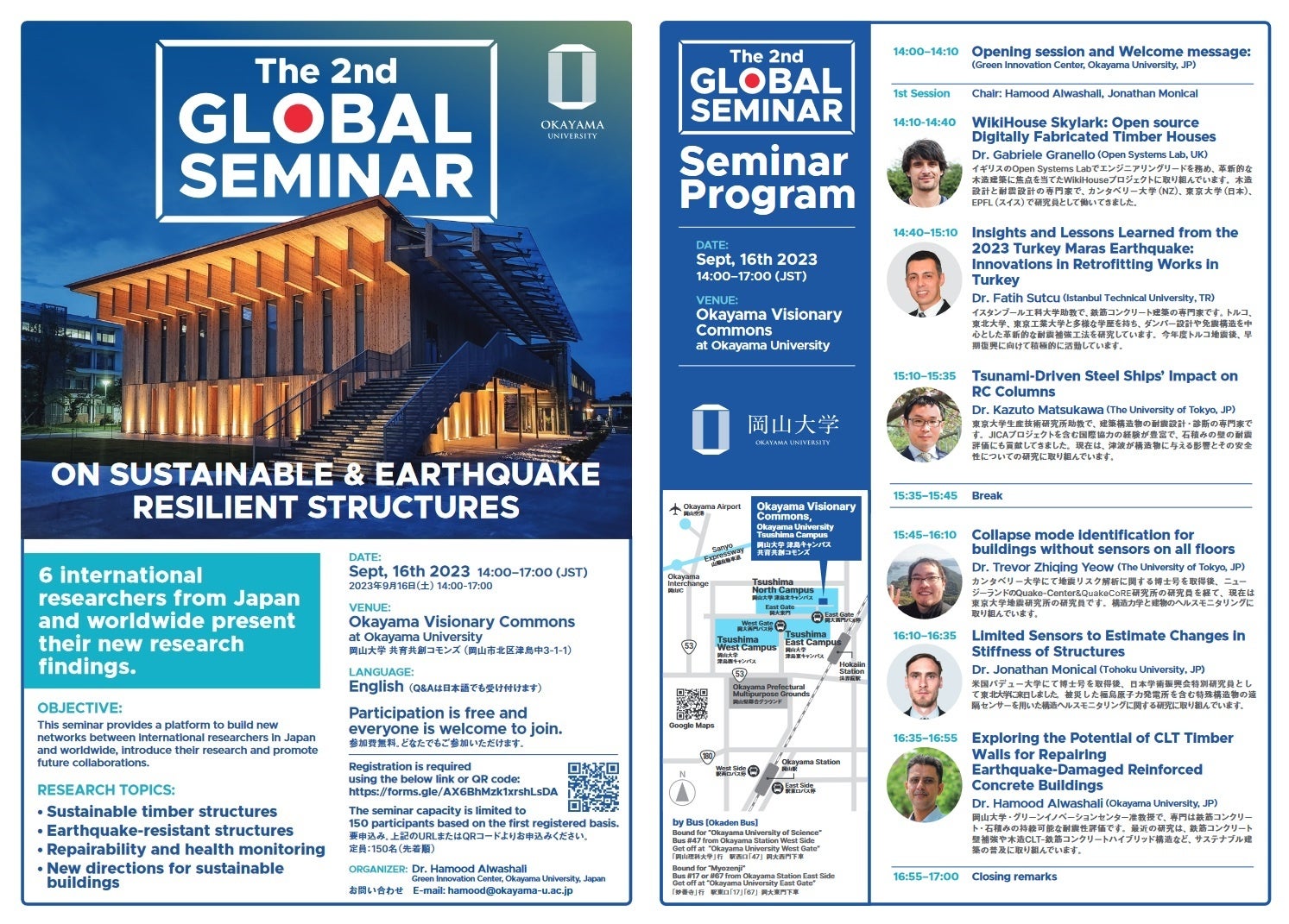 2023年9月16日(土)に本学津島キャンパスの共育共創コモンズ(OUX)で開催される本セミナーでは、より安全で持続可能な建物の創造を促進する革新的な戦略と技術に焦点を当てます。
