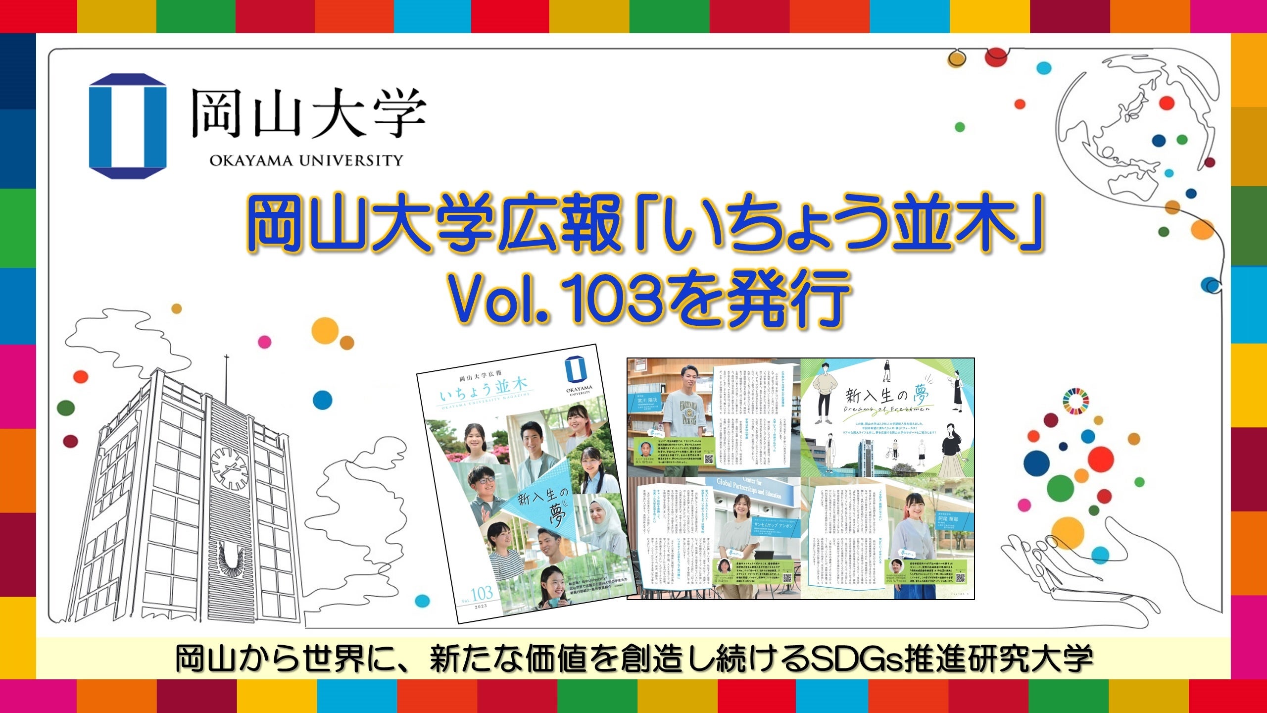 国立大学法人岡山大学(本部:岡山市北区、学長:那須保友)は、 本学の活動などを紹介する広報誌「いちょう並木」のVol.103を発行(発行:2023年8月1日)しました。