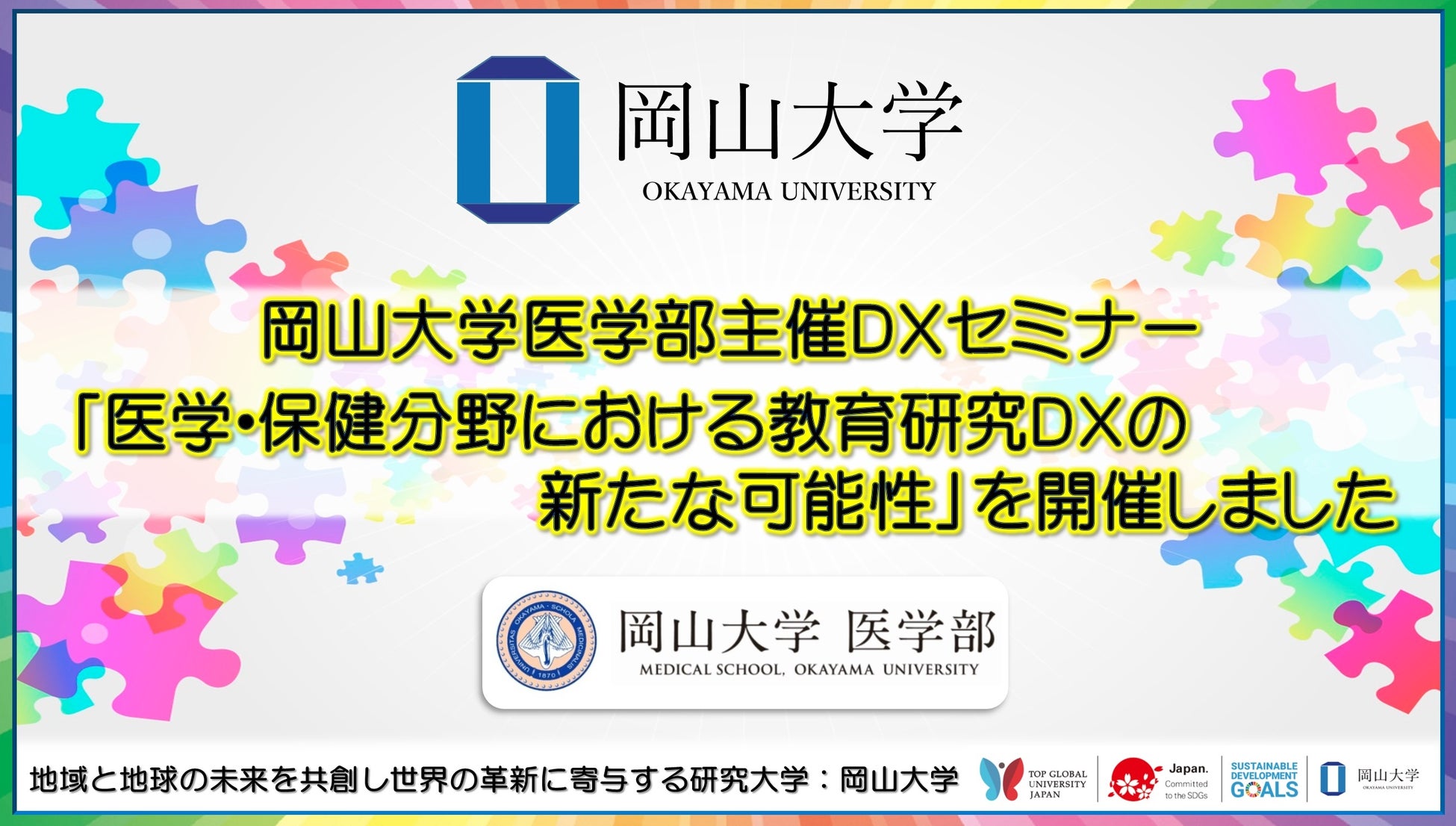 国立大学法人岡山大学(本部:岡山市北区、学長:那須保友)の医学部(医学科・保健学科)では、近年における生成AI等の急速な発展を踏まえ、DX(デジタルトランスフォーメーション)を活用して研究科・学部学科の教育研究活動の連携強化を促進する目的で、2023年8月21日(月)に「岡山大学医学部主催DXセミナー」を本学鹿田キャンパスで開催しました。