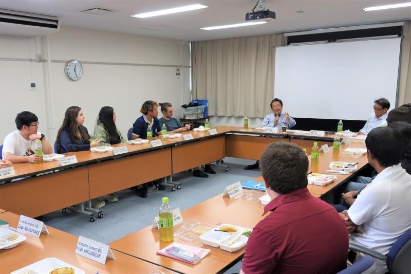 懇談会に参加したインターンシップ学生のAnkan Bhattacharyyaさん(修士2年生・Presidency University, Kolkata, India)は「那須学長は私たちの人生に前向きな変化を与えるために大切にすべきことをわかりやすく説明してくださり、懇談会はとても刺激的でした。特に一生懸命に活動すること、成功への情熱を持つこと、そして最後まであきらめないことが重要であると学びました」と感想を述べました。