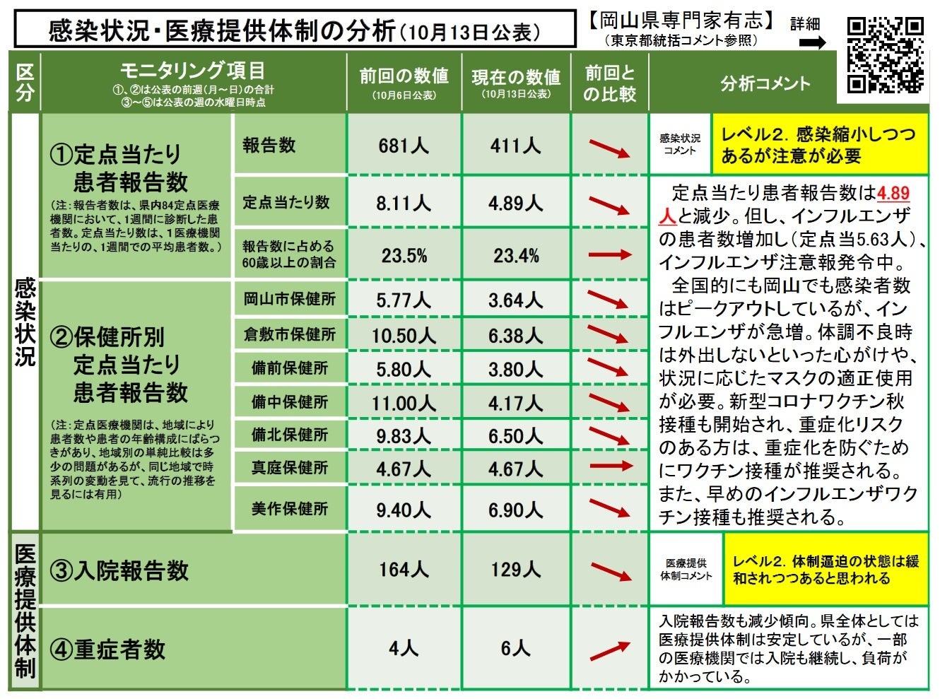 ・岡山県内の感染状況・医療提供体制の分析について(2023年10月6日現在)