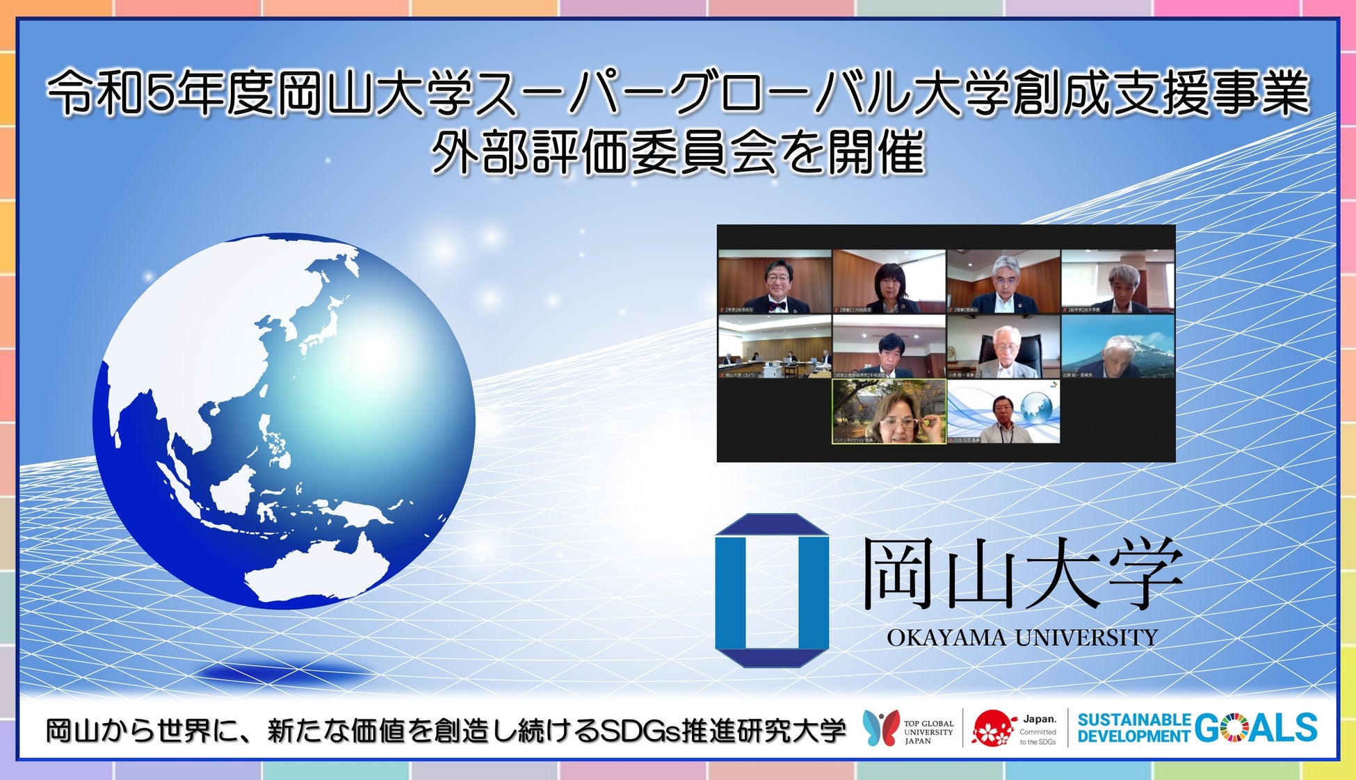 国立大学法人岡山大学(本部:岡山市北区、学長:那須保友)は、文部科学省の「スーパーグローバル大学創成支援事業」の支援対象に選定された本学の構想「PRIMEプログラム:世界で活躍できる『実践人』を育成する!」の実施状況について、令和5年度の外部評価委員会をオンライン会議形式にて開催しました。