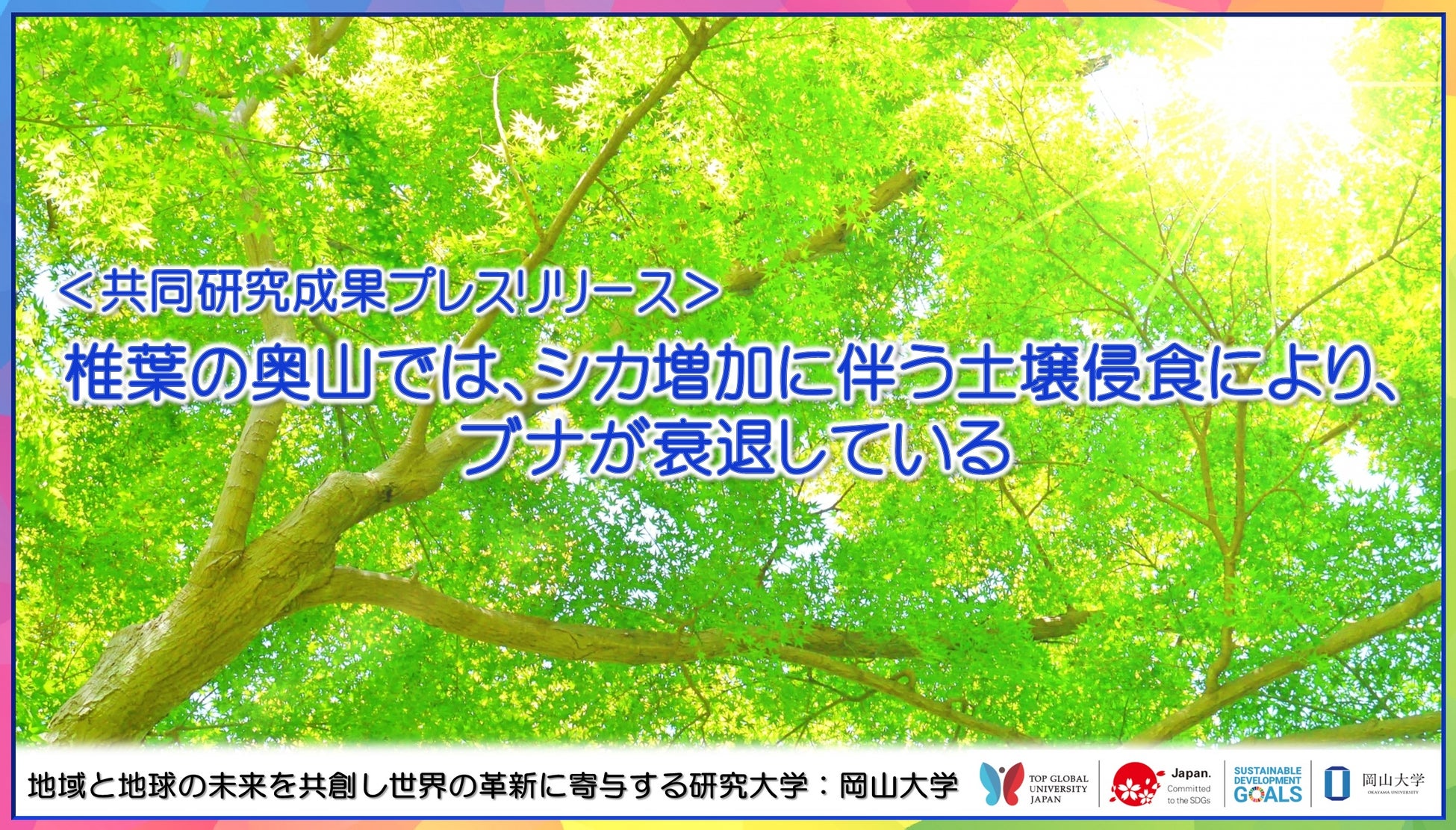 本研究成果は日本の森林で深刻化するシカの下層植生採食が樹木衰退を招く一因となることを初めて示し、今後のシカの食害対策を考えるうえで役立つことが期待されます。