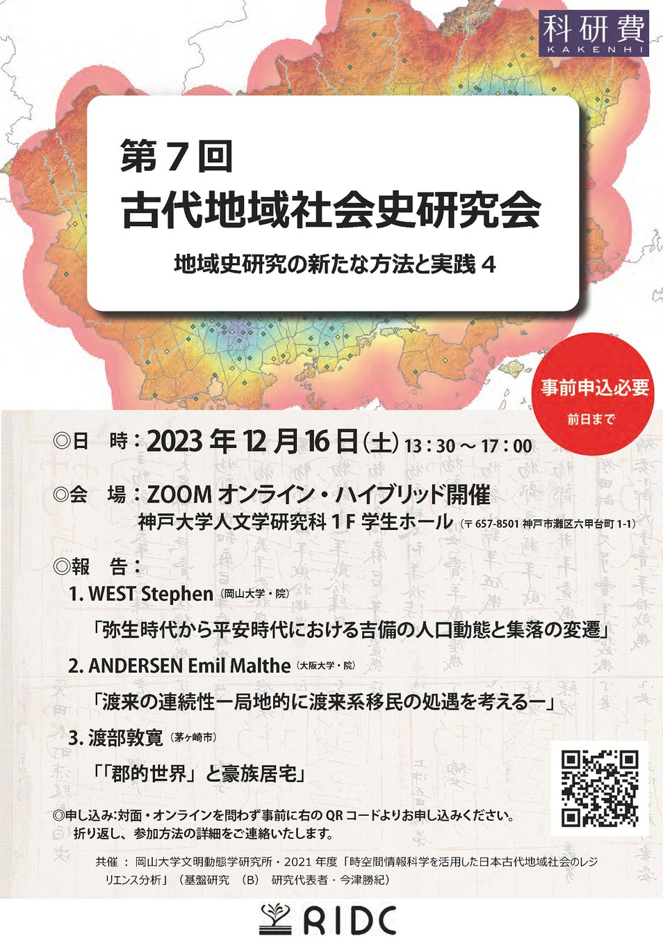 国立大学法人岡山大学(本部:岡山市北区、学長:那須保友)高等先鋭研究院の文明動態学研究所(RIDC)では、第7回古代地域社会史研究会を2023年12月16日(土)にハイブリッド形式で共催開催します。