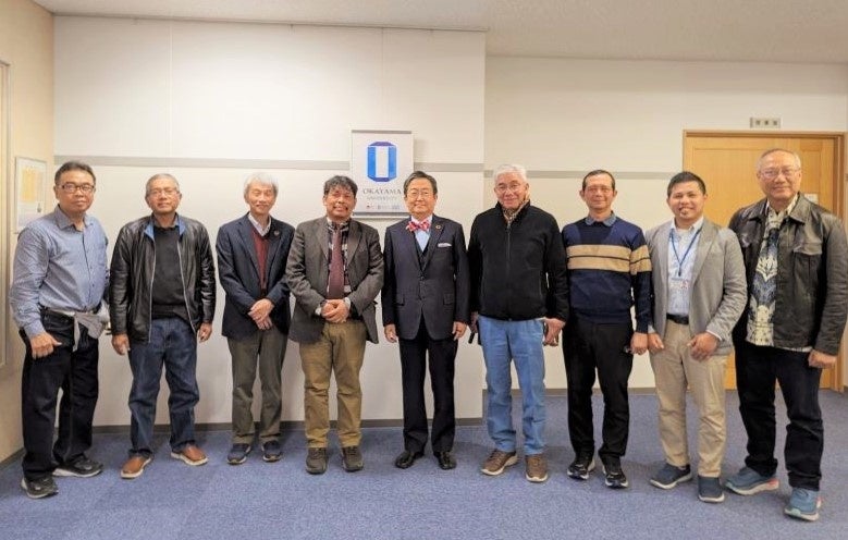 国立大学法人岡山大学(本部:岡山市北区、学長:那須保友)は2023年11月23日、本学の大学間協定校であるインドネシア・スラバヤ工科大学のイマン・ロバンディ教授会議長、プラボウォ教授会幹事ら教授6人が来学し、那須保友学長を表敬訪問しました。本学からは、鈴木孝義副学長(国際・同窓会担当)、サムスル・フダ助教(グリーンイノベーションセンター)が同席しました。訪問団の中には、本学で6か月間日本語・日本文化を学んだ経歴を持った方もおり、約20年ぶりの訪問を懐かしむ姿が見られました。
