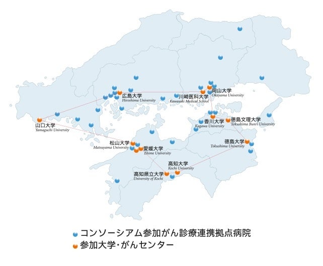 中国・四国広域がんプロ養成コンソーシアムは、中国・四国地域に位置する11大学がコンソーシアムを形成し、各大学院に多職種のがん専門医療人養成のためのコースワークを整備し、これに地域の35のがん診療連携拠点病院が連携することにより、広い地域にムラなくがん専門医療人を送り出すことを目的としています。
