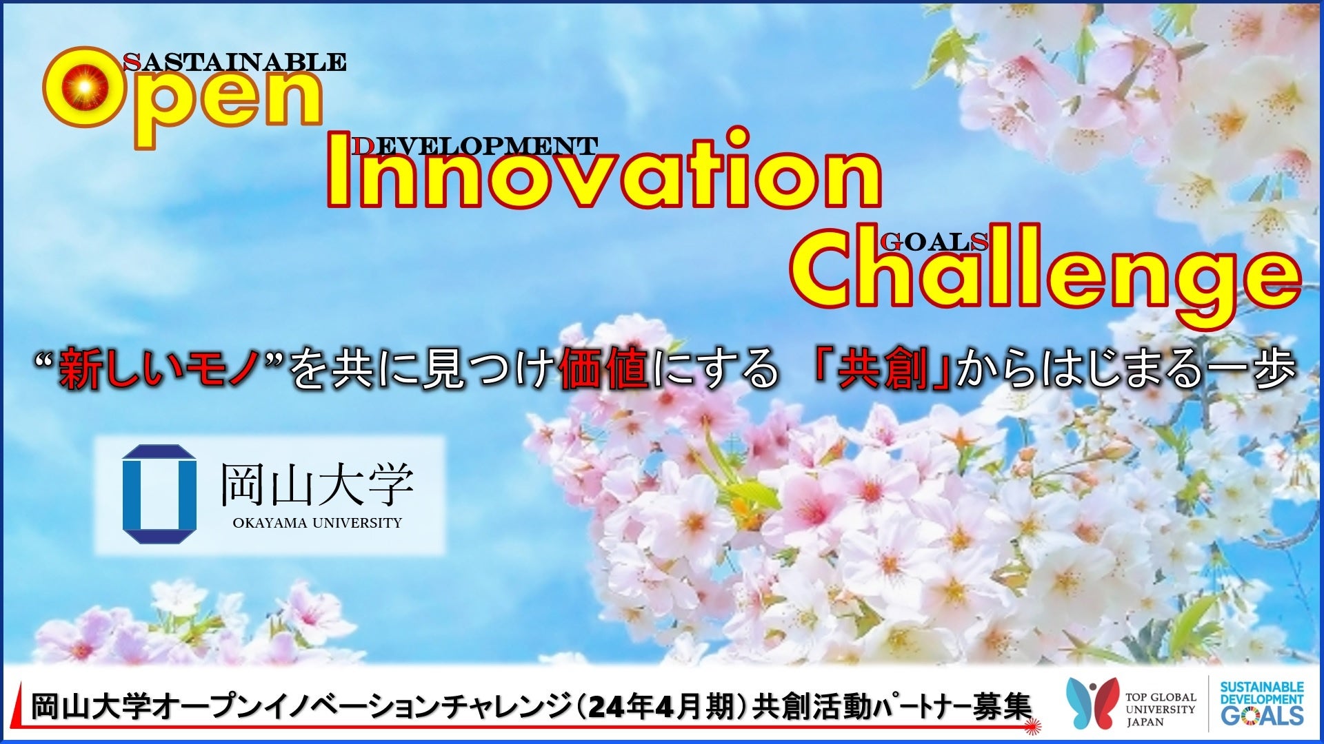 「岡大OIチャレンジ」に関する営業・売り込みのご連絡を頂くことがございますが、現在、共創パートナーの募集を実施しております。個別の取り組みに関することや営業の案内には対応しかねますので、何卒よろしくお願い申し上げます。