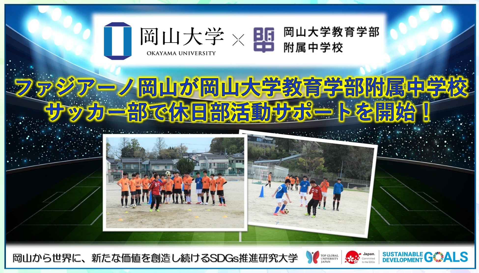国立大学法人岡山大学(本部:岡山市北区、学長:那須保友)の教育学部附属中学校は、2024年4月13日から一般社団法人ファジアーノ岡山スポーツクラブによる部活動サポートが始まりました。