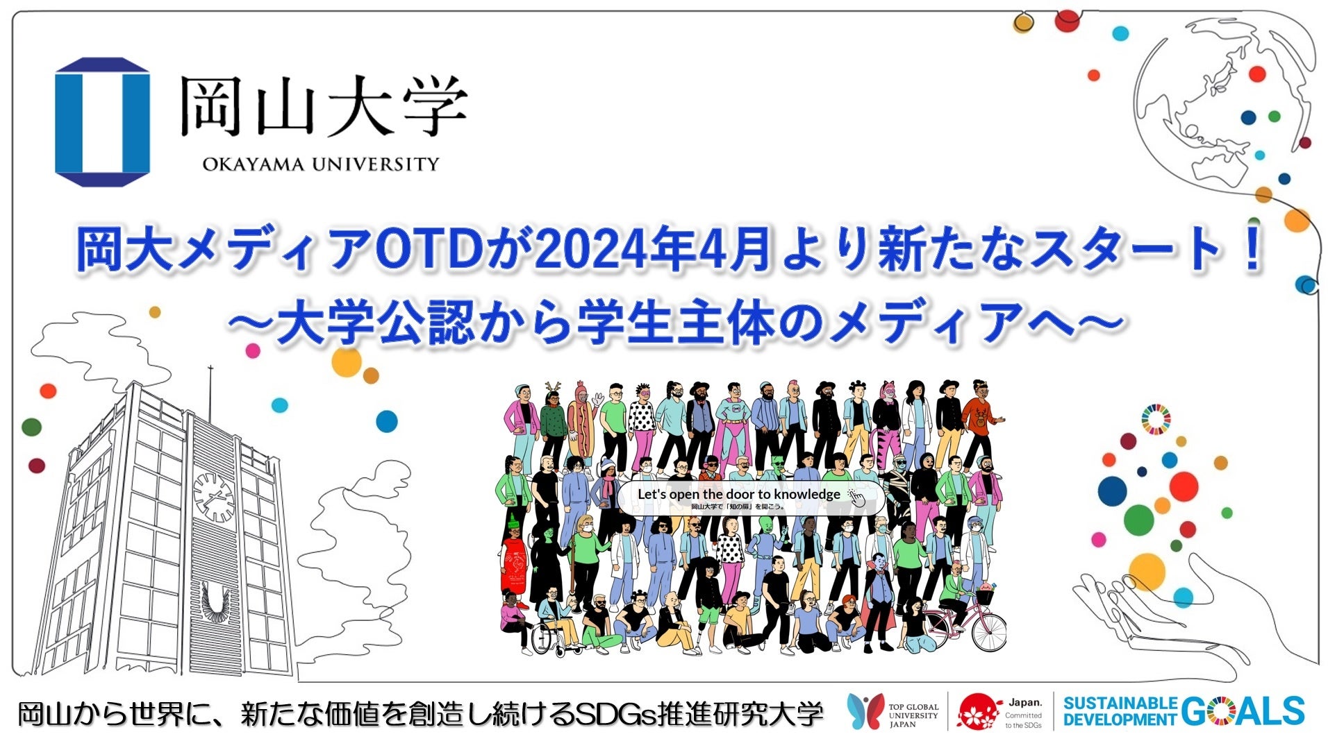 情報発信メディア『岡大メディア(OTD)』は2024年4月1日より、岡山大学公認メディアから本学学生が主体となって運営するメディアに移行します。
