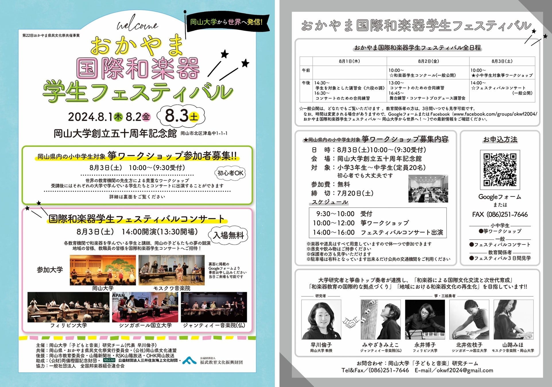 2024年 8月 3日(土)14時~:おかやま国際和楽器学生フェスティバルコンサート