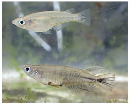 図1. セレベスメダカのメス(上)とオス(下)