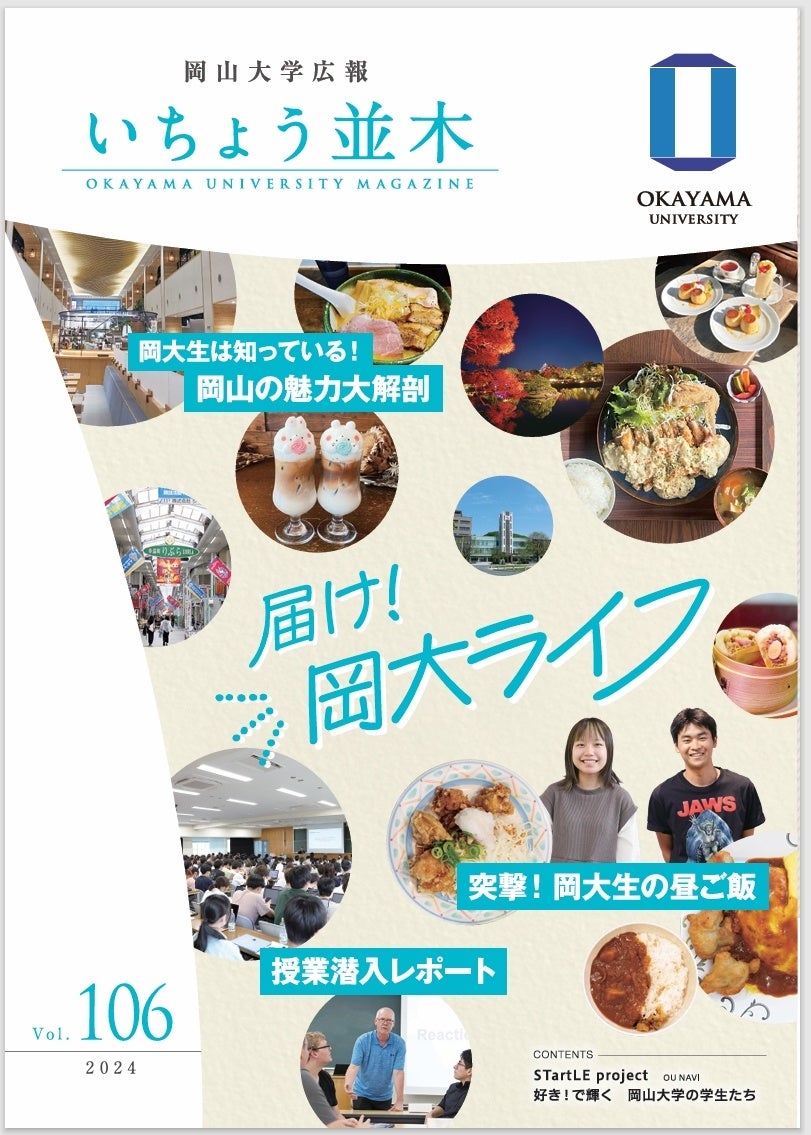 国立大学法人岡山大学(本部:岡山市北区、学長:那須保友)は、 本学の活動などを紹介する広報誌「いちょう並木」のVol.106を発行(発行:2024年8月1日)しました。