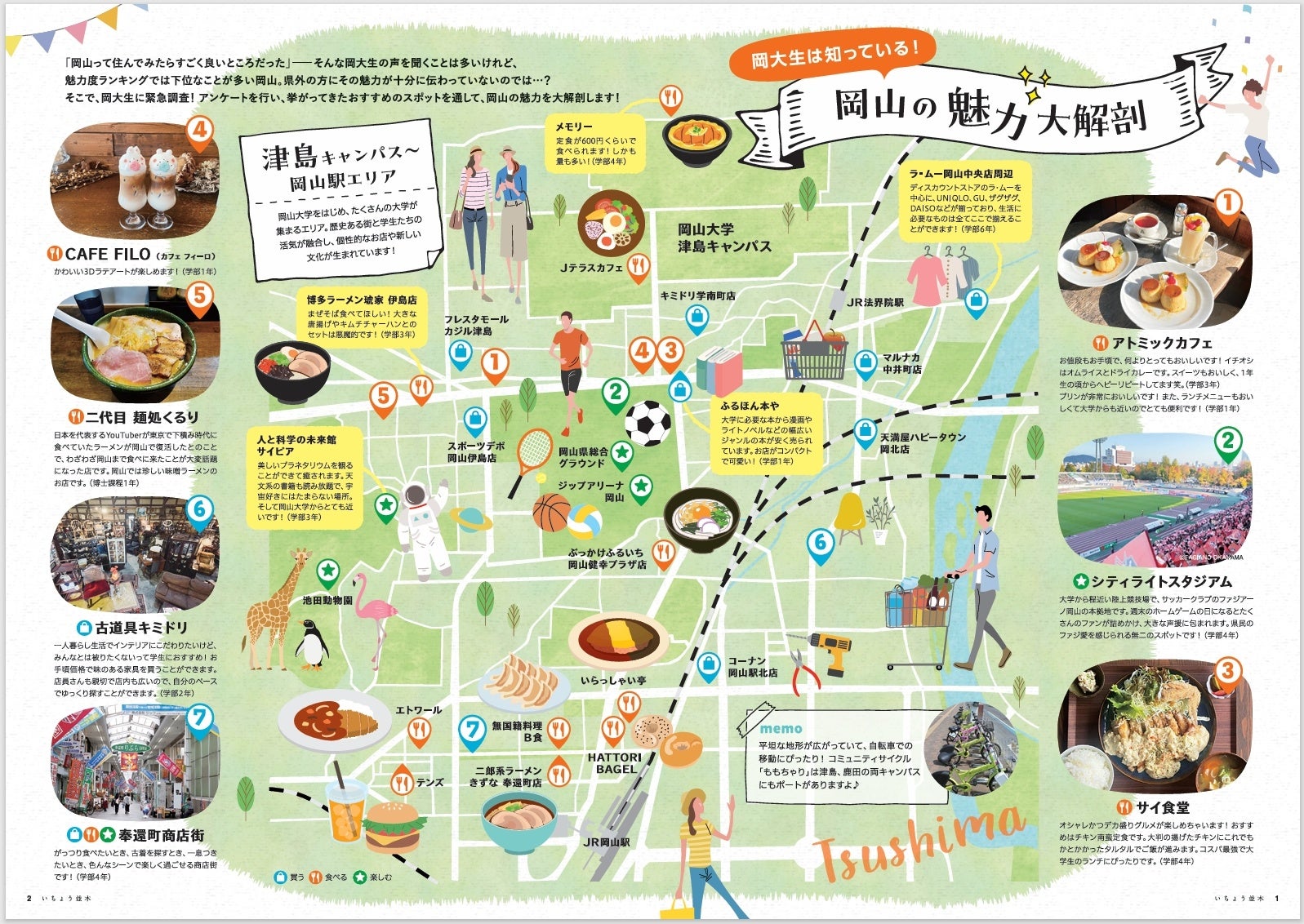 本号では、 岡大生は知っている! 岡山の魅力大解剖として、岡山大学生の視点を中心とした特集号となっています。