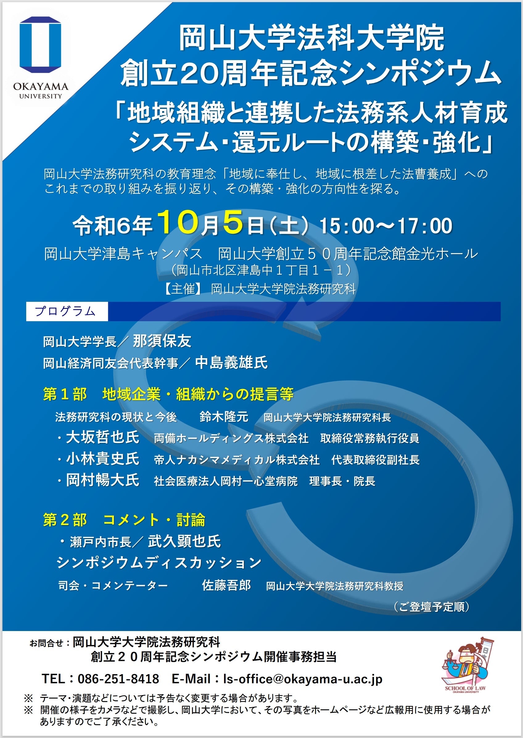 岡山大学大学院法務研究科 創立20周年記念シンポジウム開催事務担当(担当:高本)