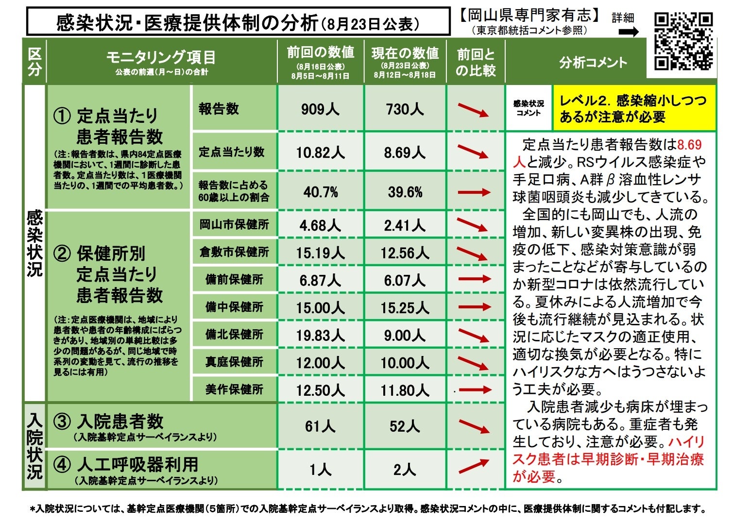 ・岡山県内の感染状況・医療提供体制の分析について(2024年8月16日現在)